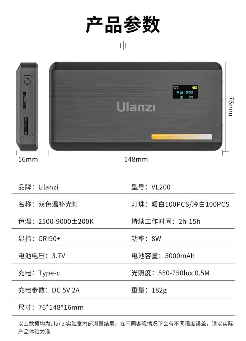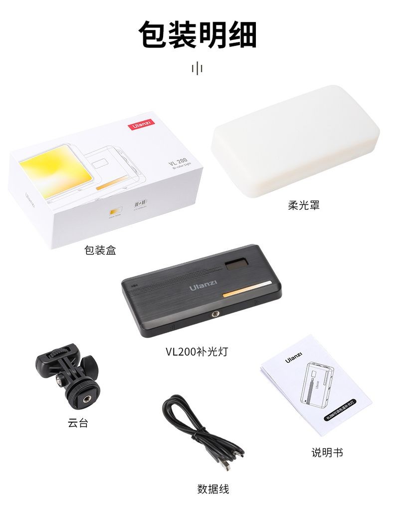 【带柔光罩】Ulanzi优篮子 VL200双色温补光灯LED摄影灯便携柔光灯直播摄影相机微单打光灯室内人像 【5000毫安】双色温补光灯