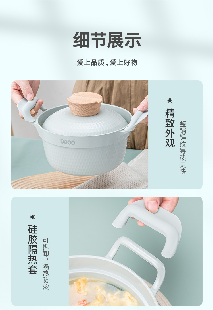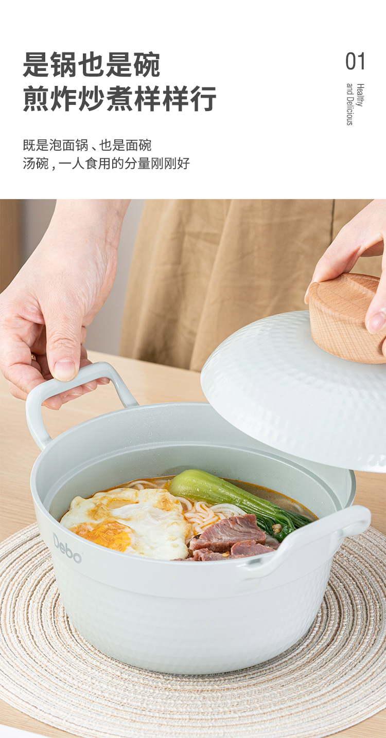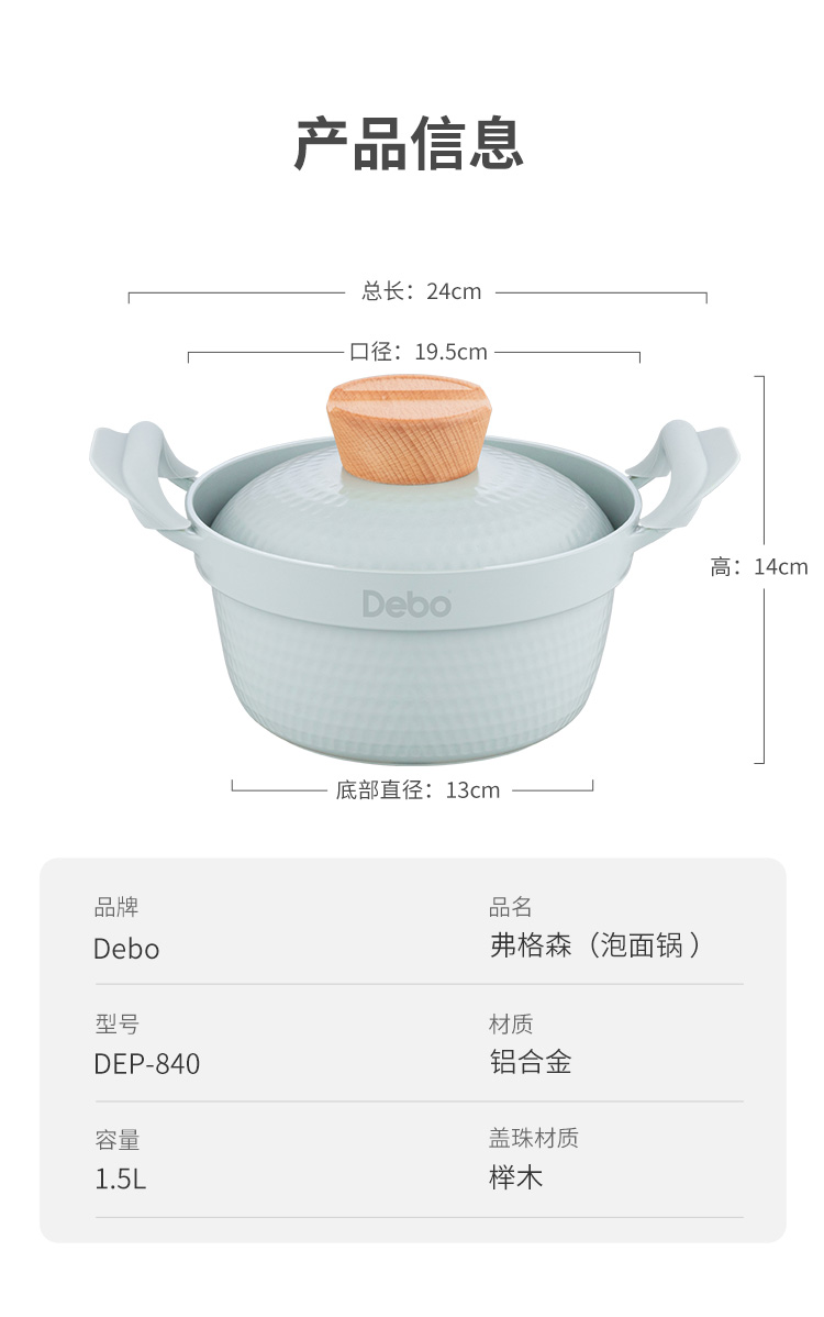 Debo德铂弗格森铝合金泡面锅1.5L不粘锅学生宿舍小锅家用煮面一人食汤锅