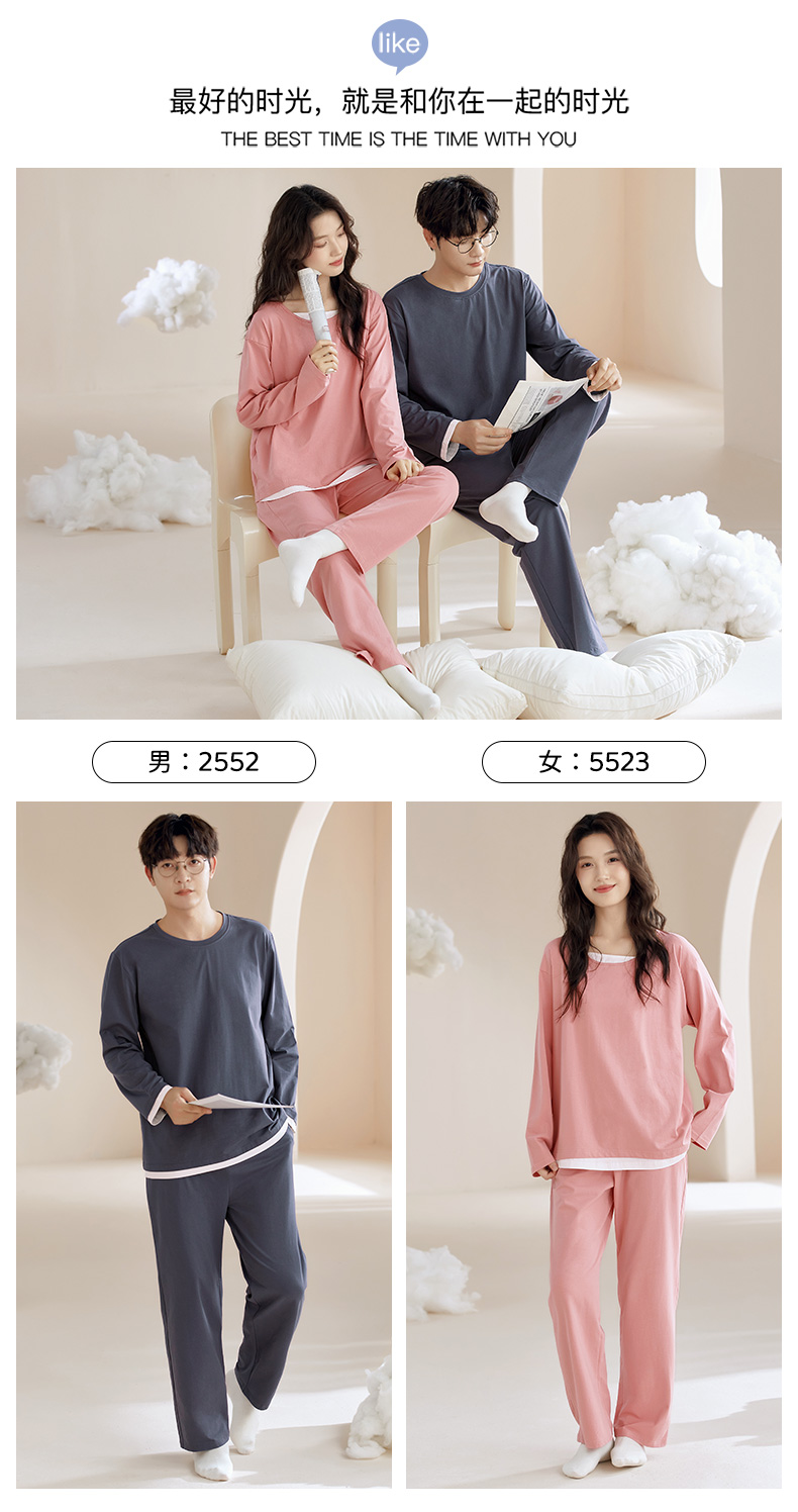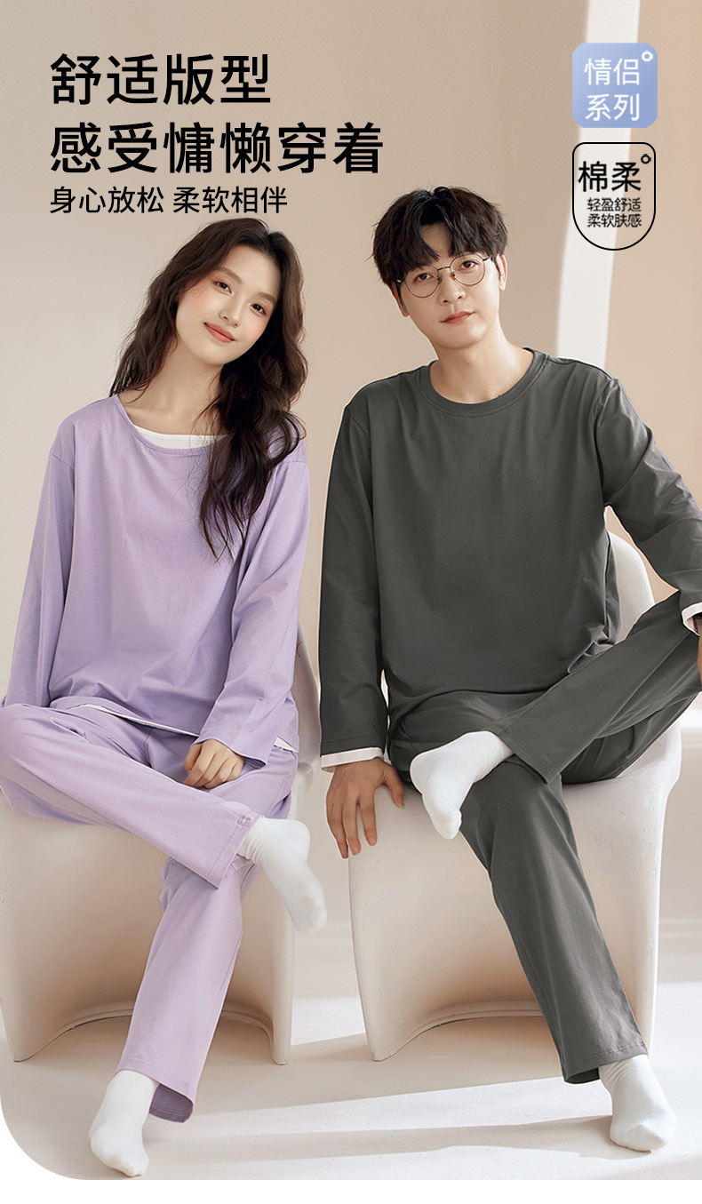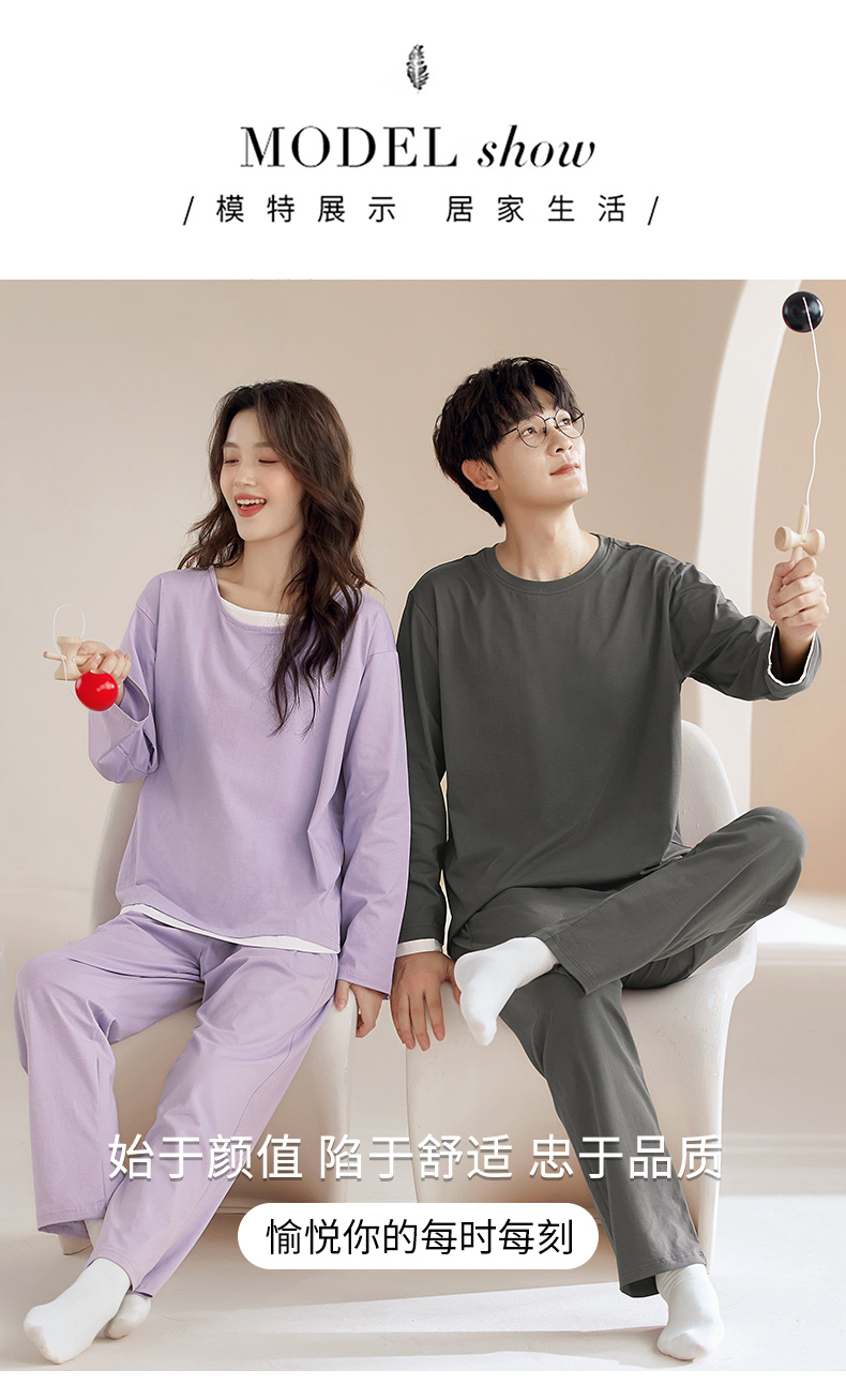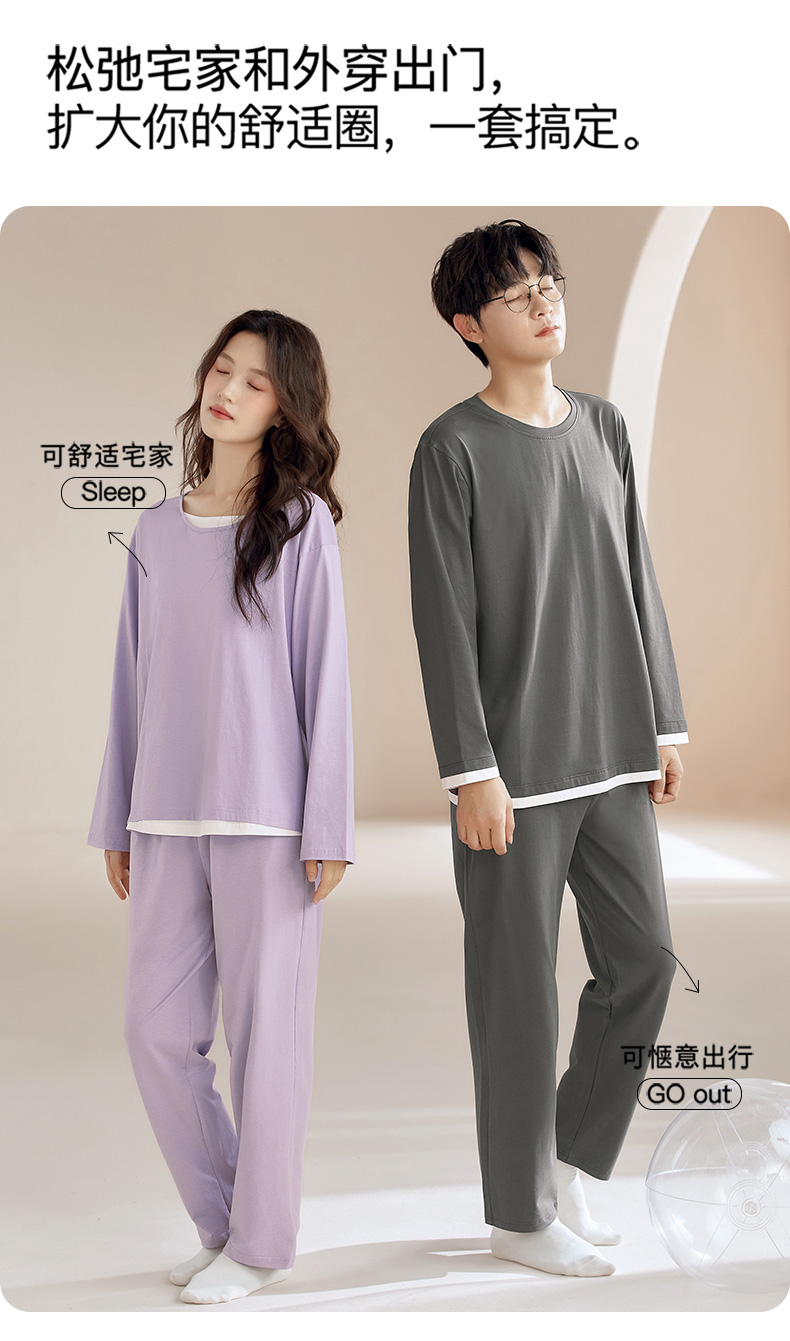 【换季出清】自然醒朝夕情侣家居服100%棉长袖长裤套头睡衣QH