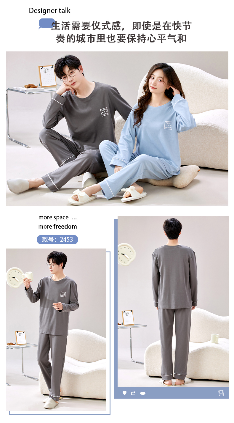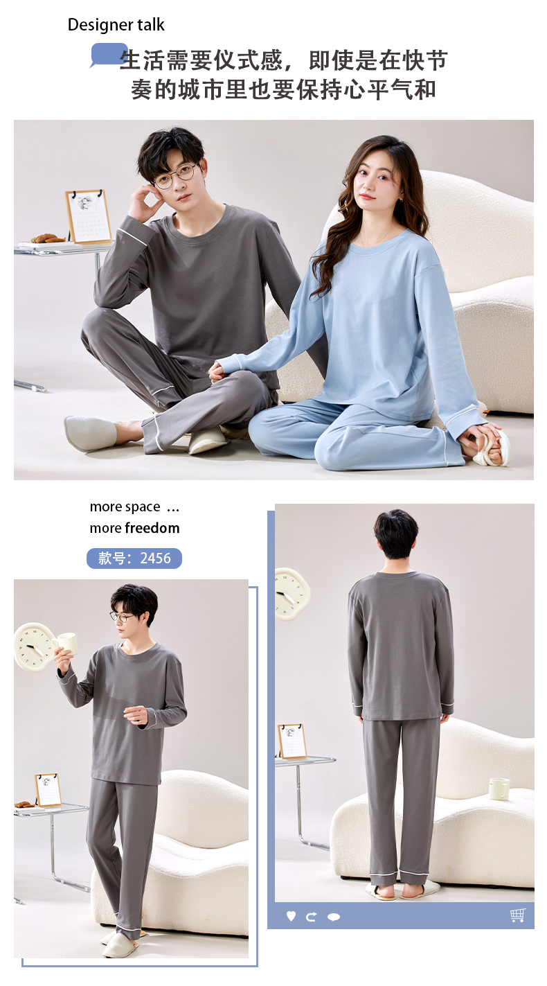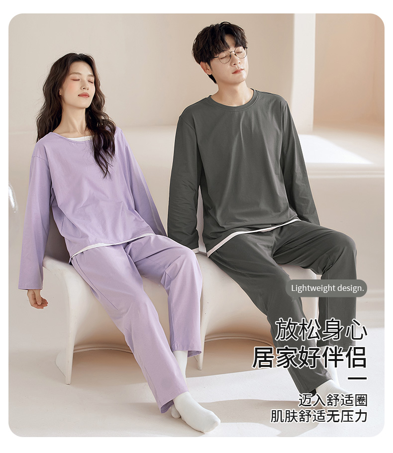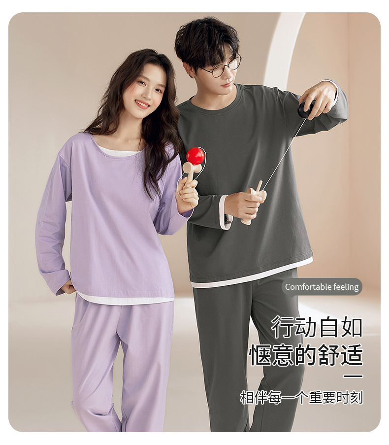【换季出清】自然醒朝夕情侣家居服100%棉长袖长裤套头睡衣QH
