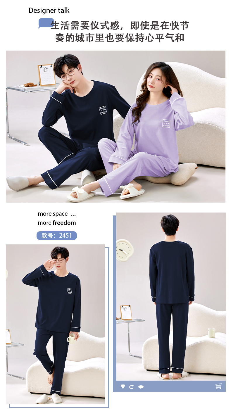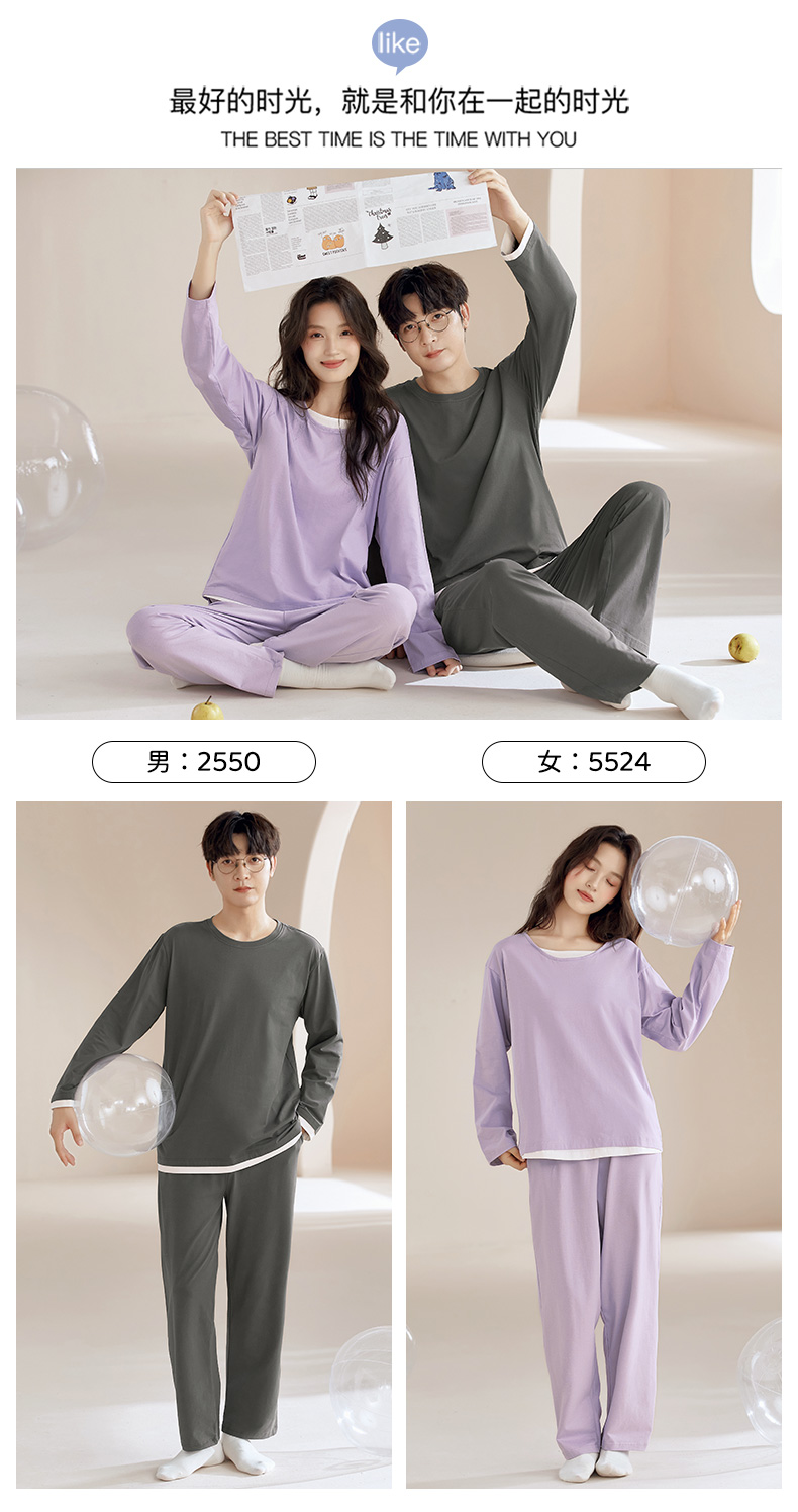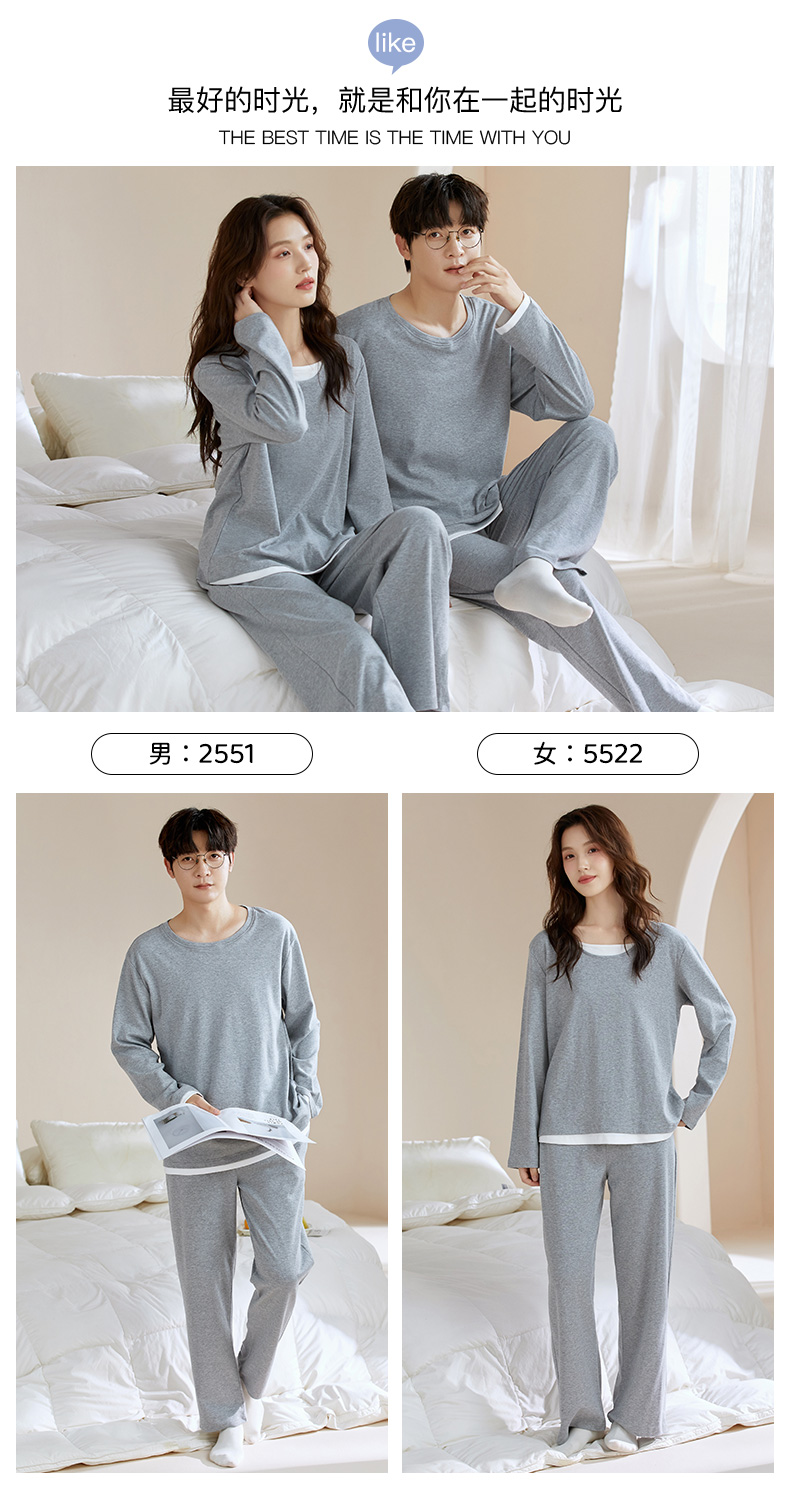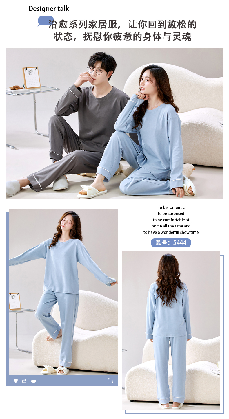 【换季出清】自然醒朝夕情侣家居服100%棉长袖长裤套头睡衣QH