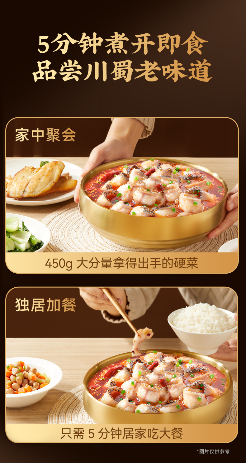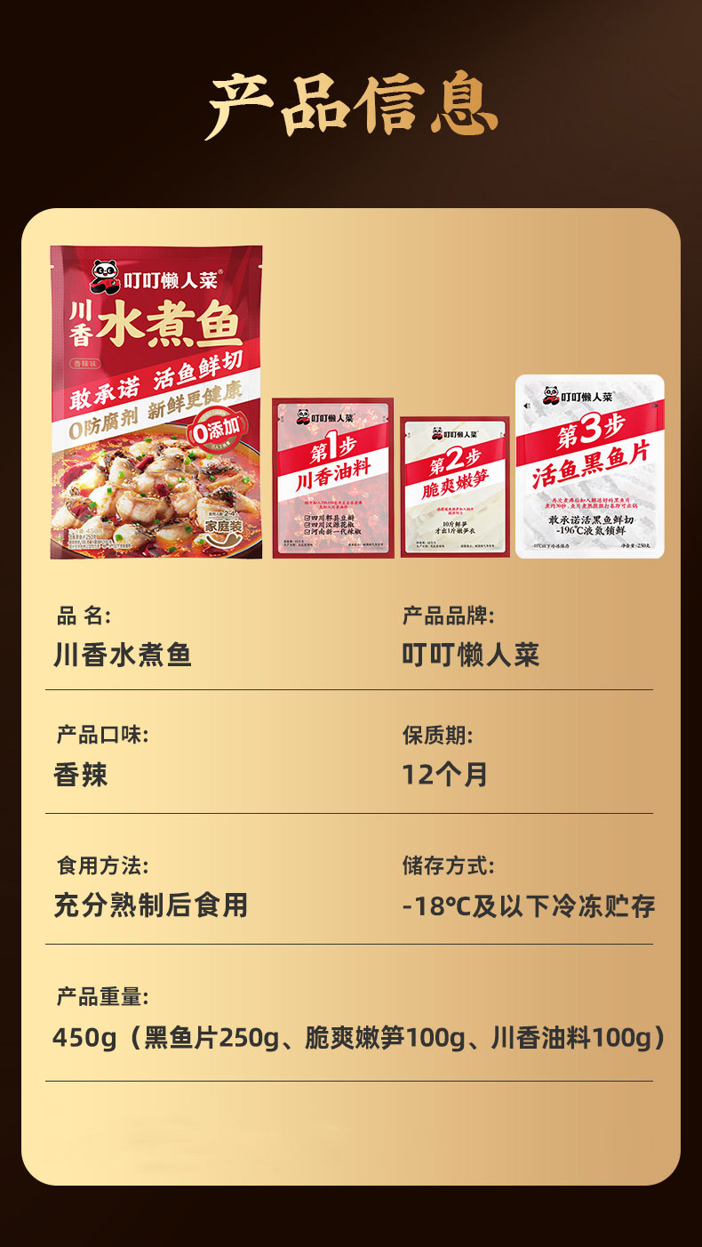 【叮叮懒人菜供货】 新品川香水煮鱼450g/袋 活鱼鲜切的黑鱼片和特调的料包 微麻微辣口