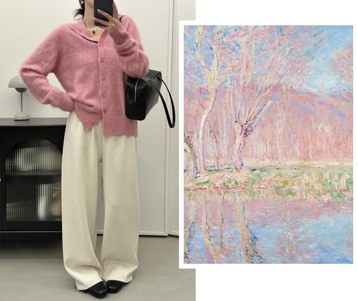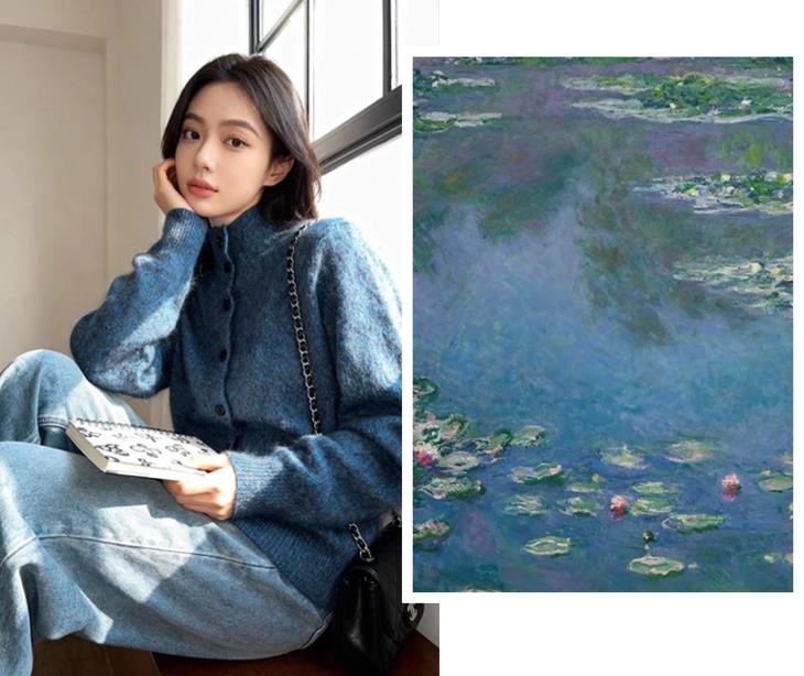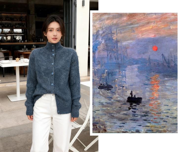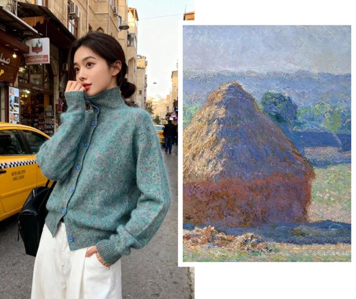 当莫奈的调色盘遇见花纱针织工艺,将印象派的色彩魔法编织进每寸纤维,让简约的针织衫成为会移动的艺术品。