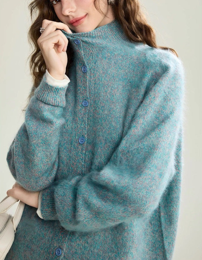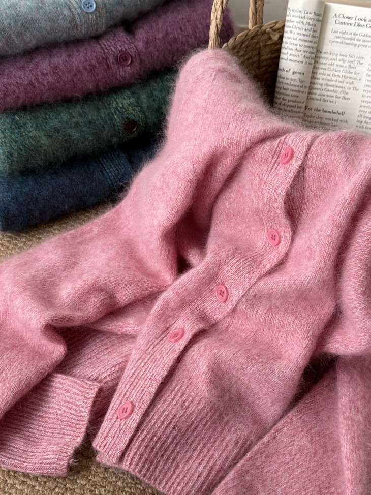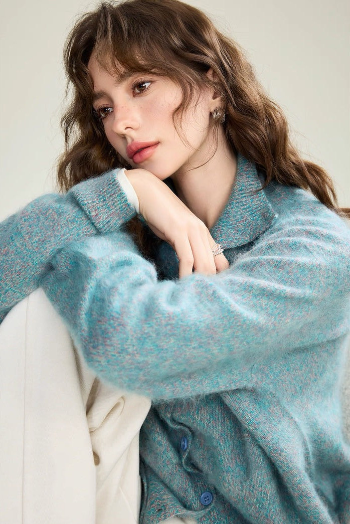 [莫奈花纱」小皮草油画感拉毛开衫系列 ,高级莫奈花园配色,绵羊毛与山羊绒混纺【G】