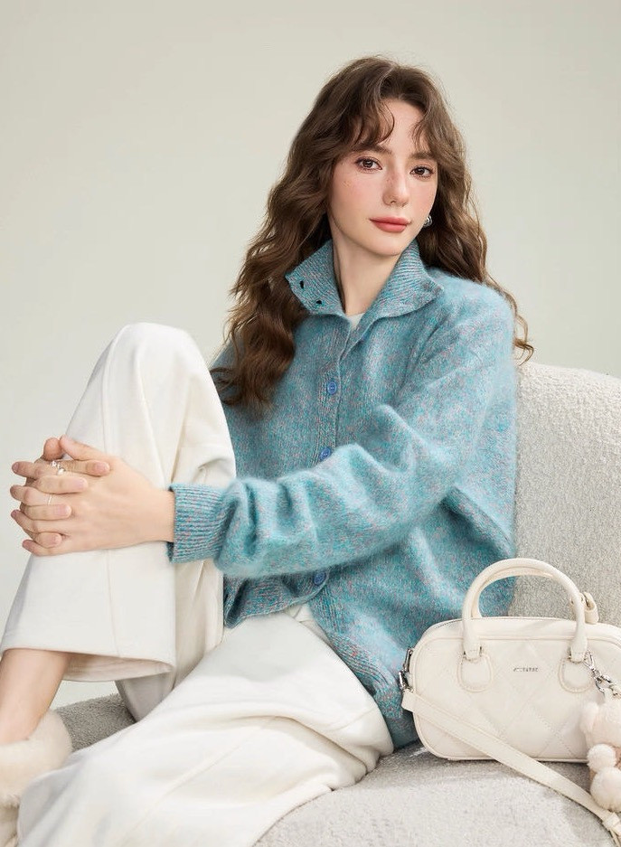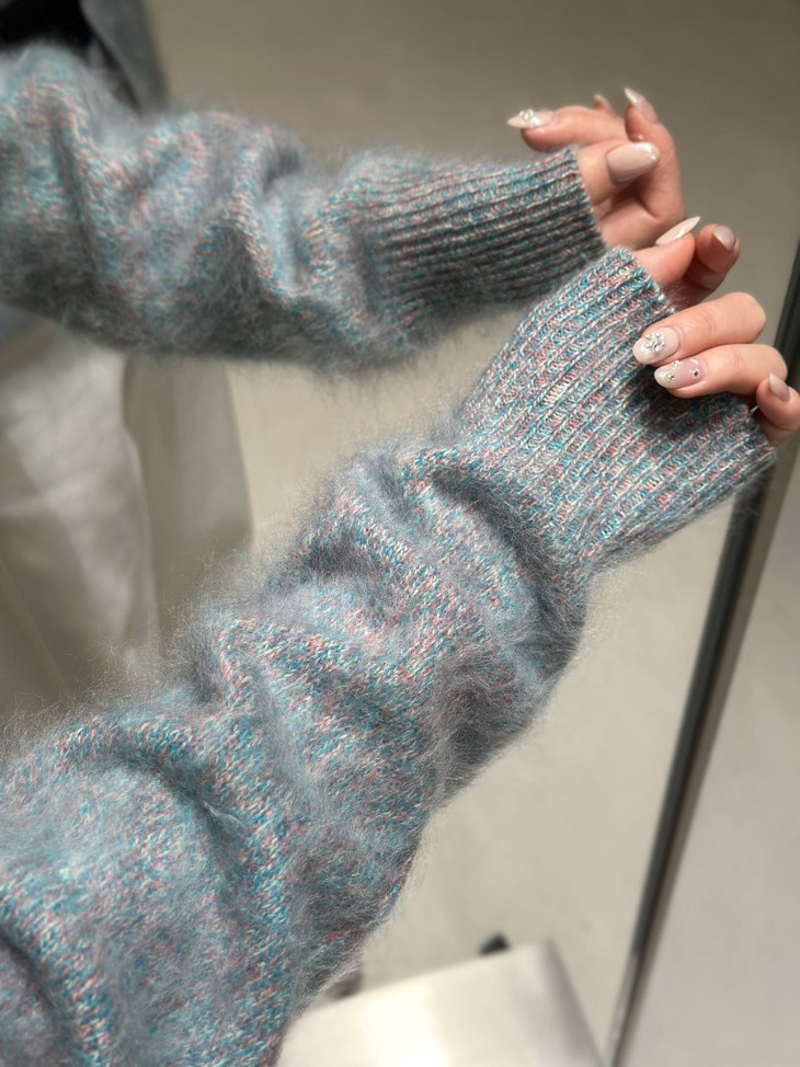 从而形成这种朦胧柔暖的高级感,工艺复杂度和成本不是普通羊毛羊绒衫可比的,对工艺和原料的要求非常之高。