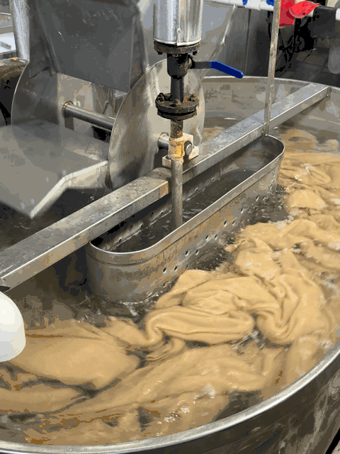 这款拉绒可不是直接用进口设备机械式地拉,而是用了特殊酵洗工艺,洗7到12个小时五道处理环节,用特质的软水让羊毛绒面出绒。