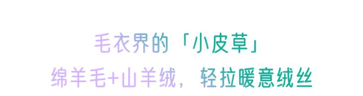 以95%绵羊毛+5%山羊绒混纺原料的拉毛工艺,轻盈软糯自带高级感强调,可谓是毛衣界的“小皮草”。