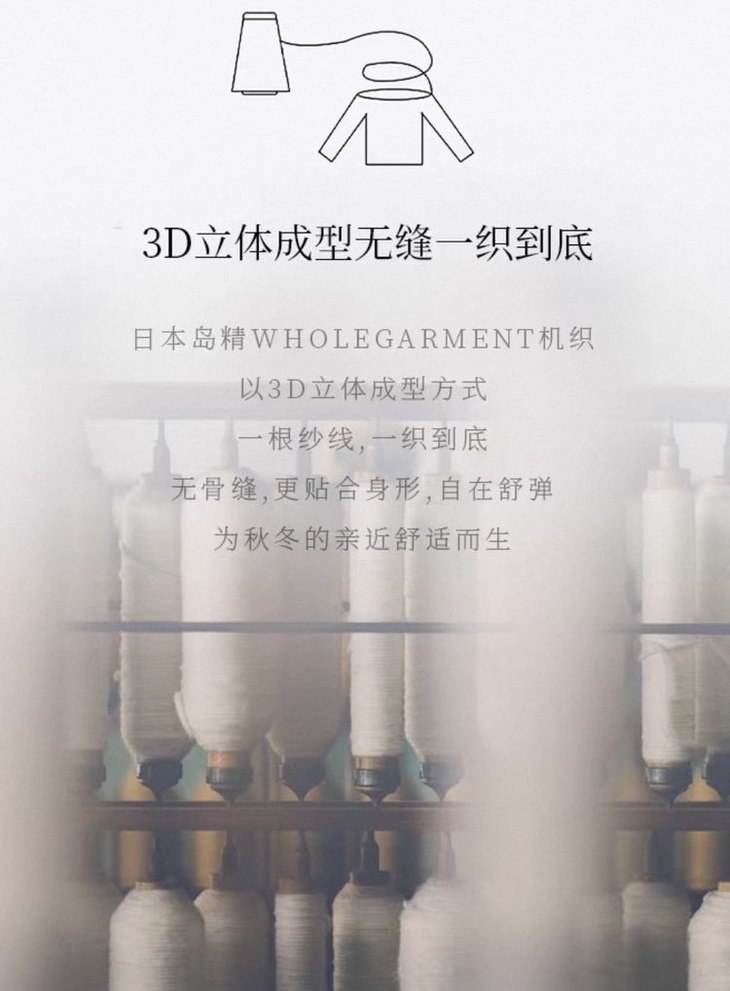 采用日本岛精WHOLEGARMENT®全成型3D无缝一体针织技术,一根纱线,一织到底,无骨缝,更贴合身材,自在舒弹。