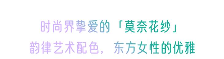 花纱配色灵感源于莫奈《干草堆》晨雾版,蓝绿色基调加入粉色营造早上晨曦的感觉,以米白色增添光感,自带柔光镜效果。