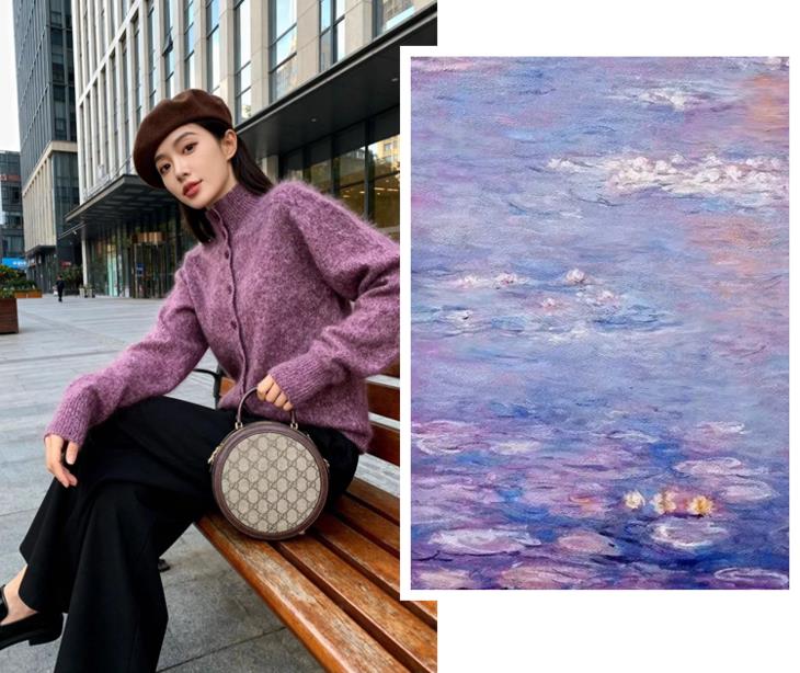倘若将莫奈的调色,打翻在羊毛里,碰撞出来的高级感不亚于“莫奈花园”:
