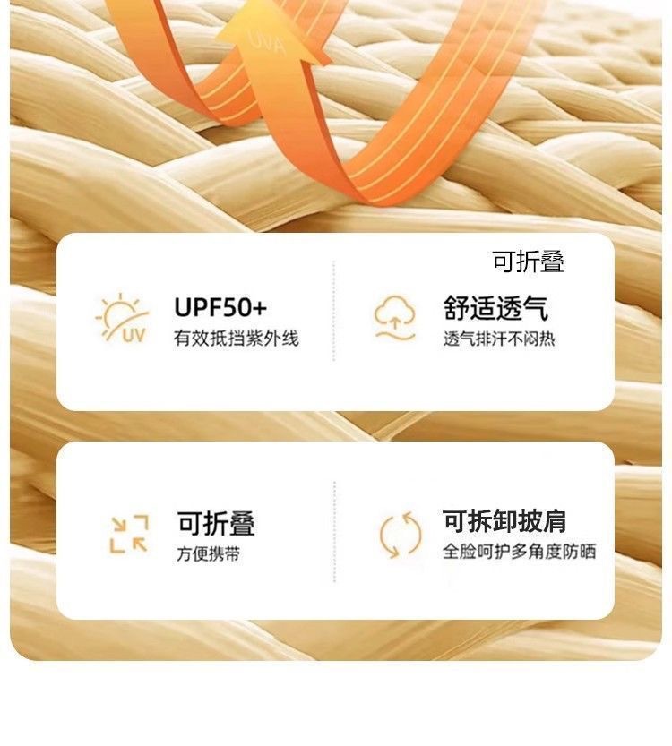 加大帽檐遮阳防晒帽女夏护披肩防紫外线骑车草编空顶太阳帽可折叠