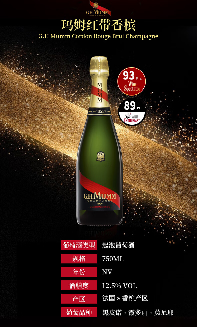 玛姆 红带法国香槟750ml