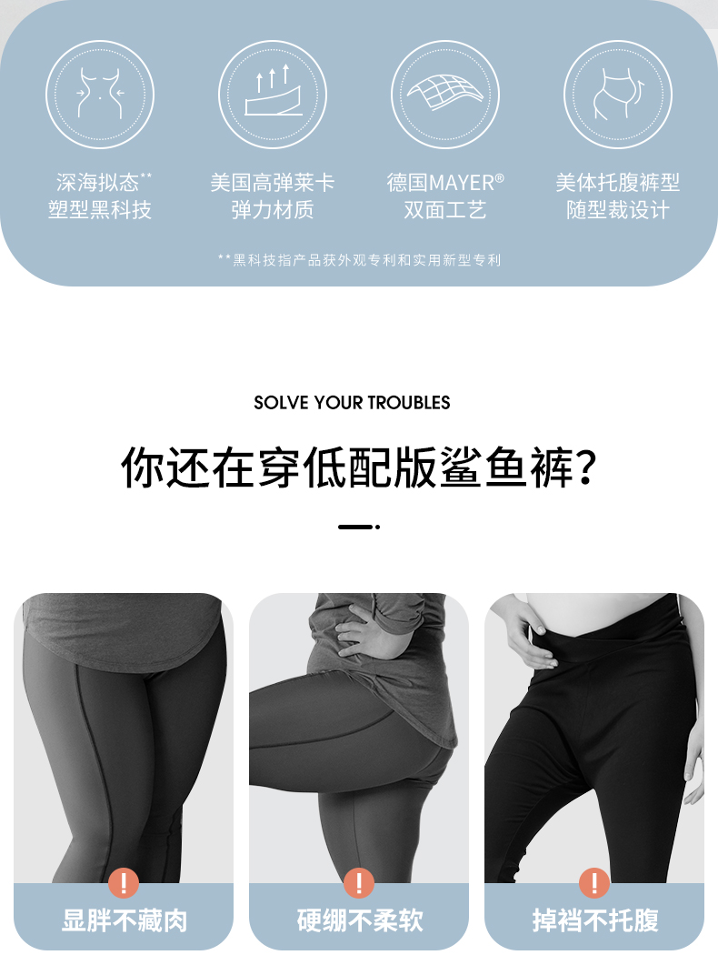嫚熙孕妇鲨鱼裤子春秋外穿九分运动夏季薄款小个春装女打底裤瑜伽A