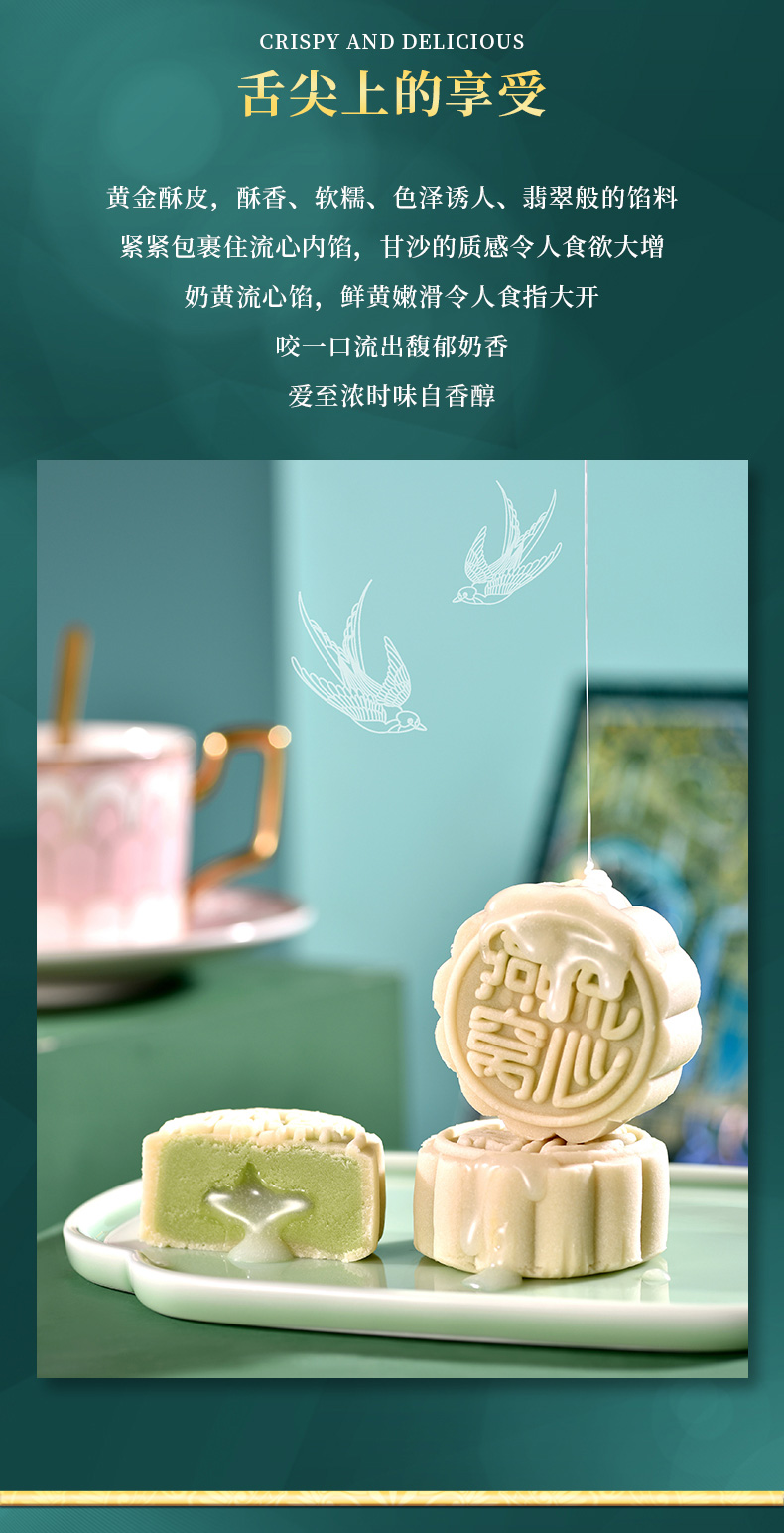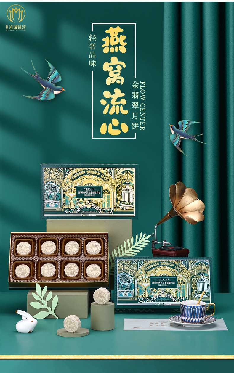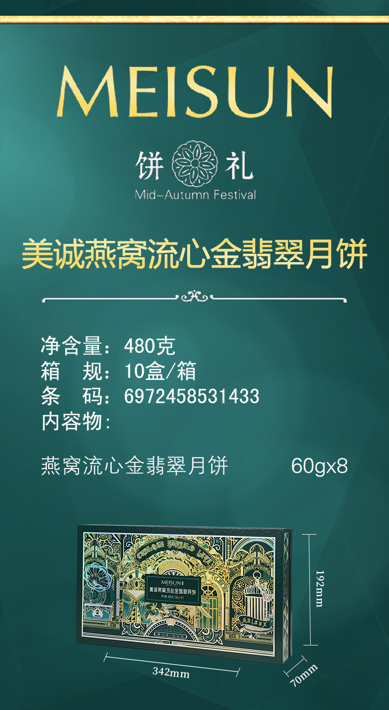 香港美诚 | 燕窝流心金翡翠 中秋月饼礼盒480g8粒装