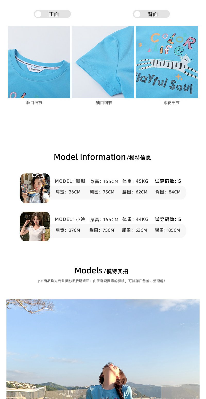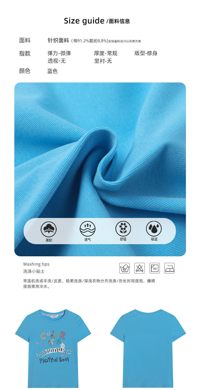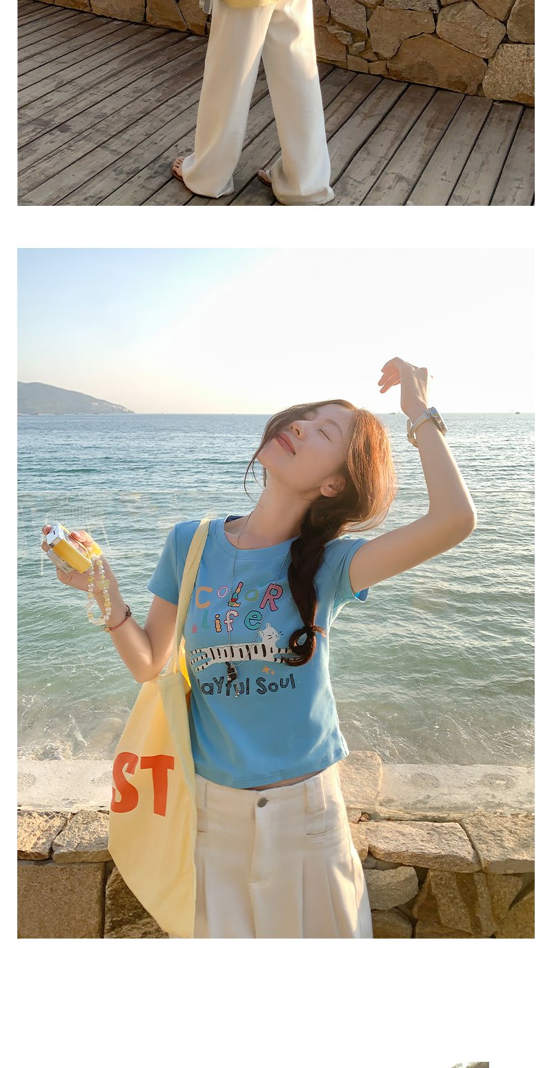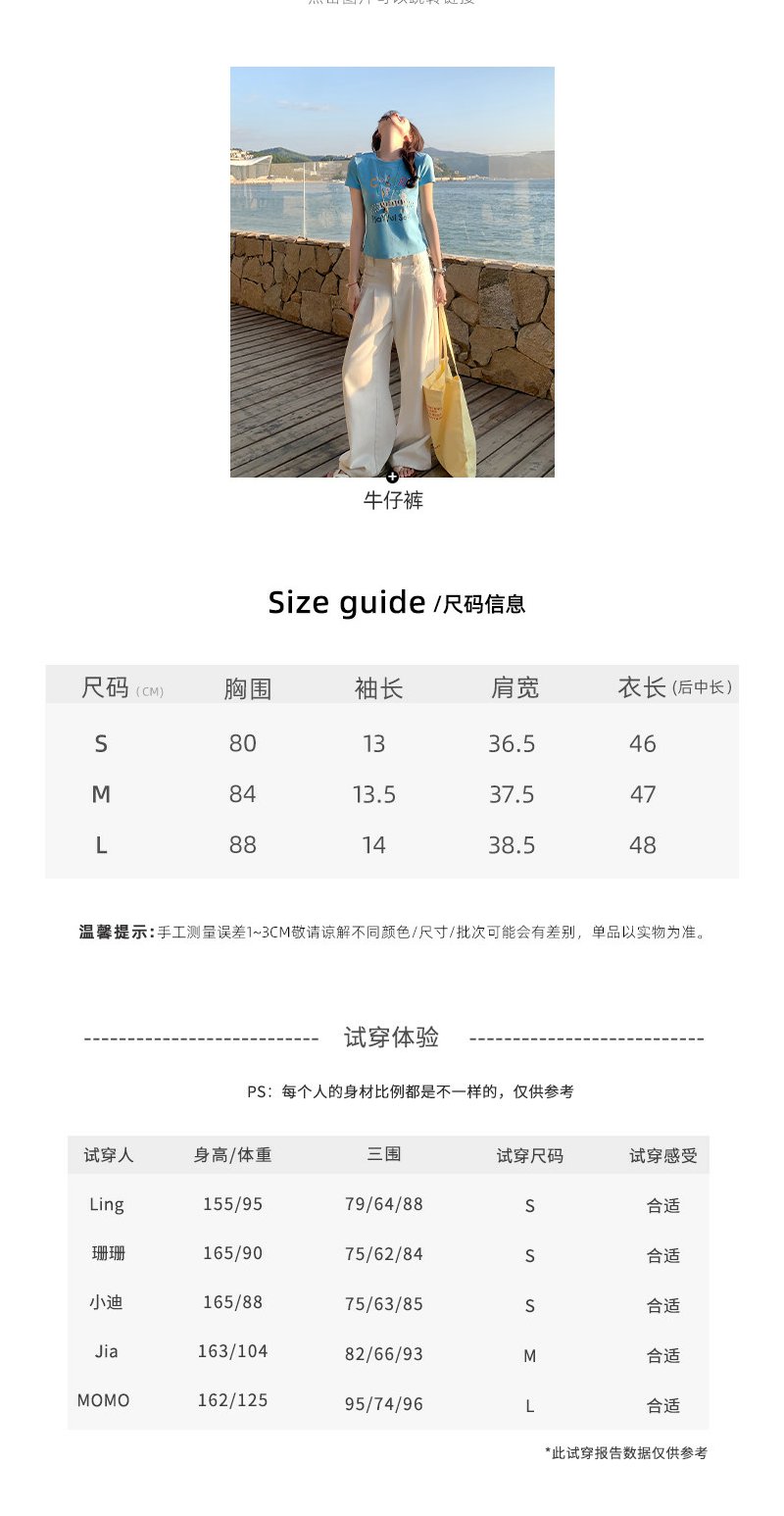 <曾小咸推荐>韩系印花短袖t恤女蓝色上衣