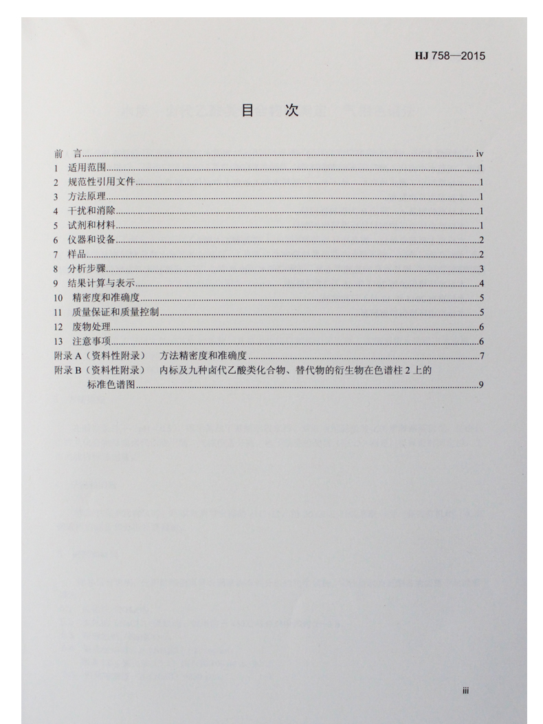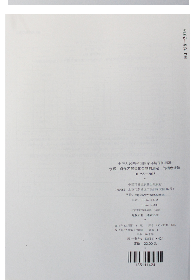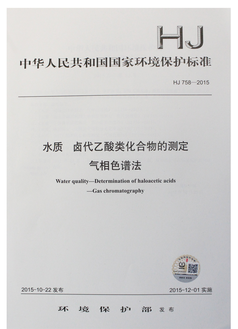 HJ 758-2015 水质 卤代乙酸类化合物的测定 气相色谱法 国家标准 国标 GB 环境保护 135111424