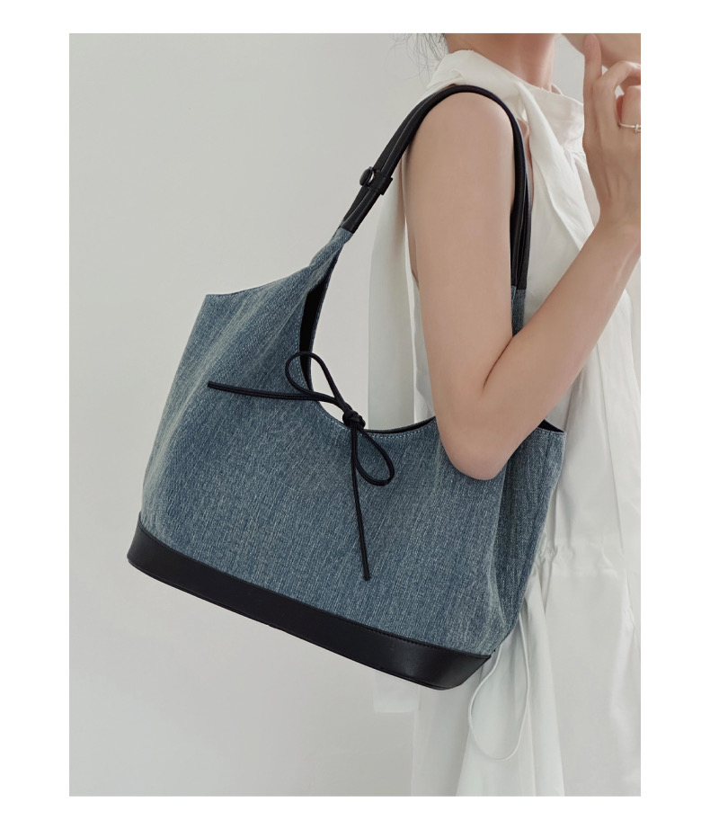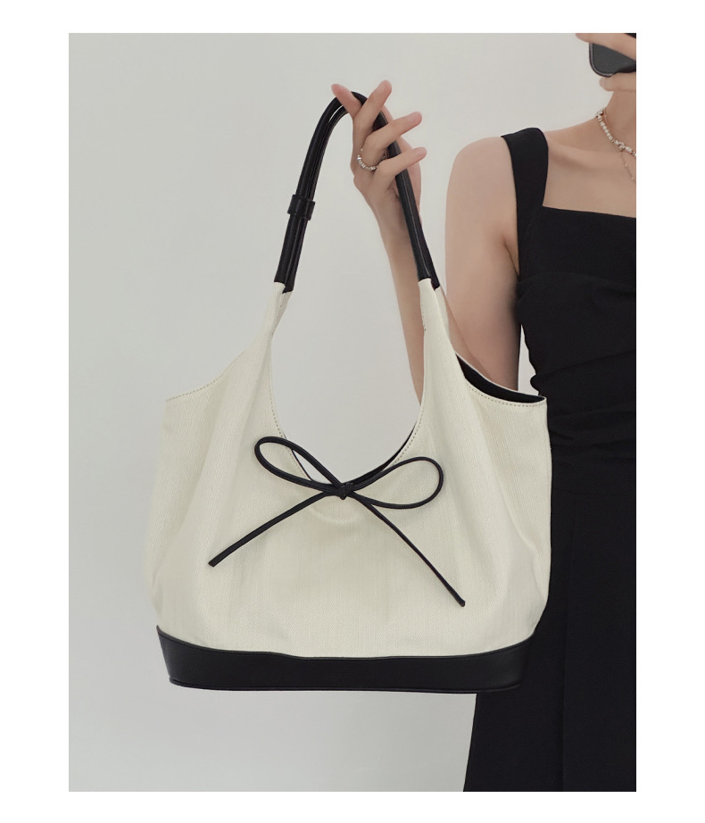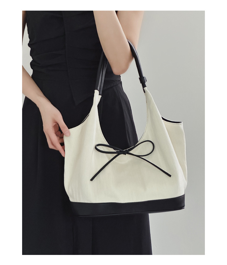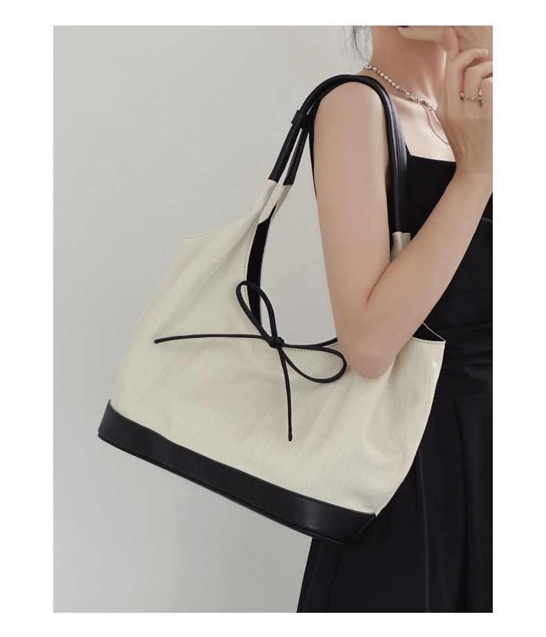韩系蝴蝶结小众帆布拼接单肩腋下包大容量简约通勤时尚手提托特包