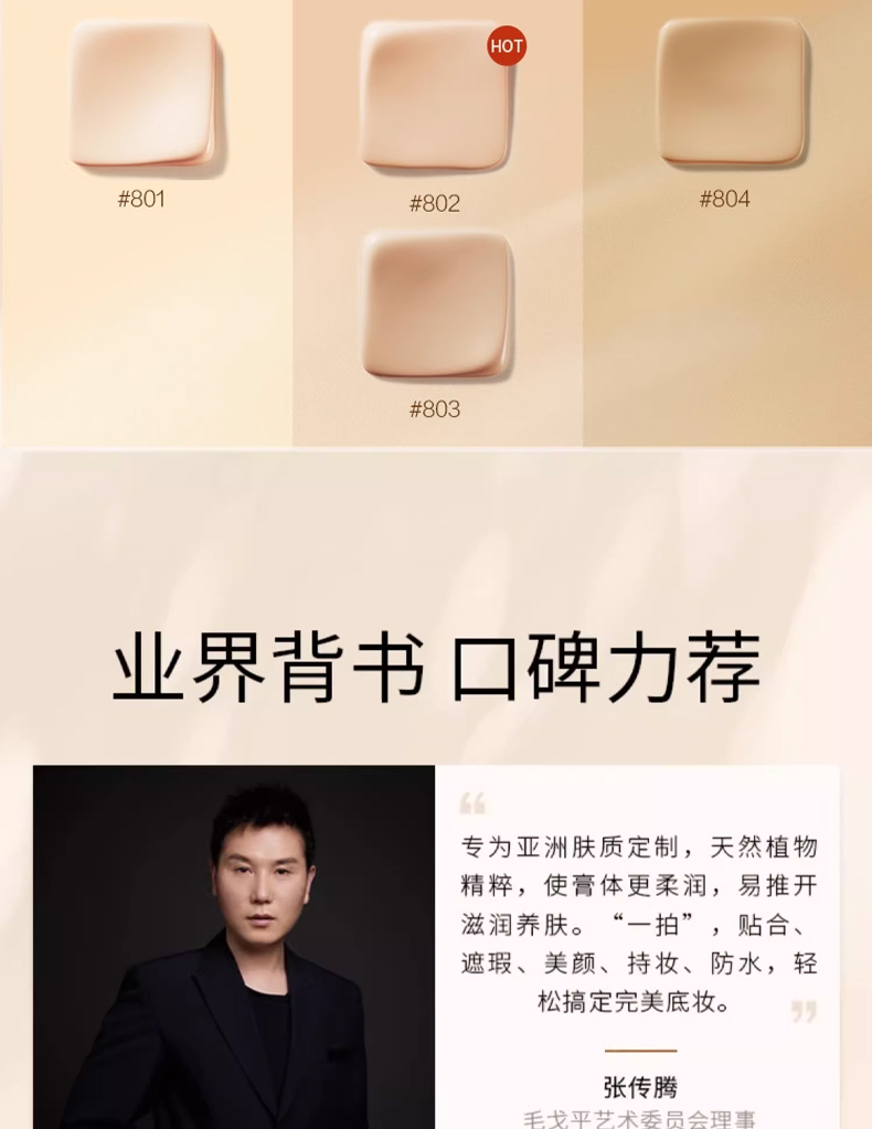毛戈平光感美肌无痕粉膏 定妆持久控油防汗遮瑕不脱妆隐形毛孔干湿两用