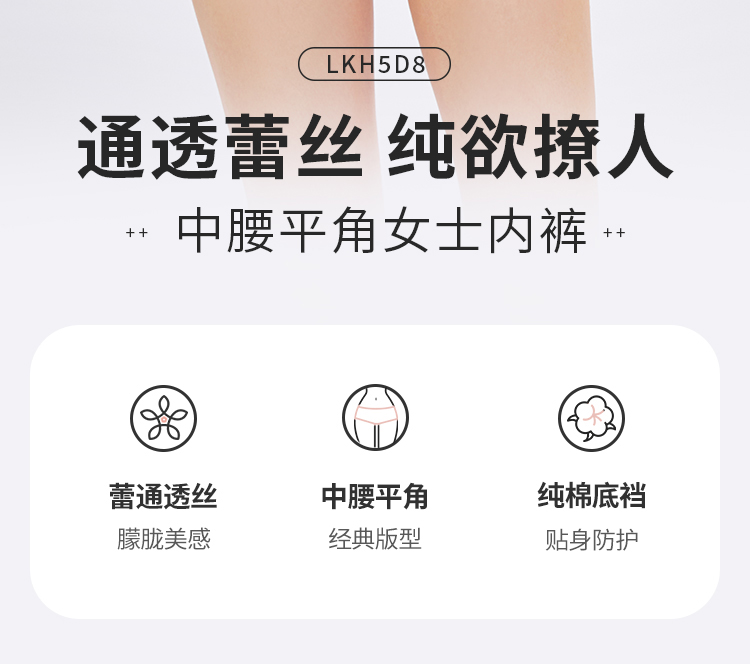 都市丽人蕾丝网布系列蕾丝薄透丝滑平角裤LKH5D8