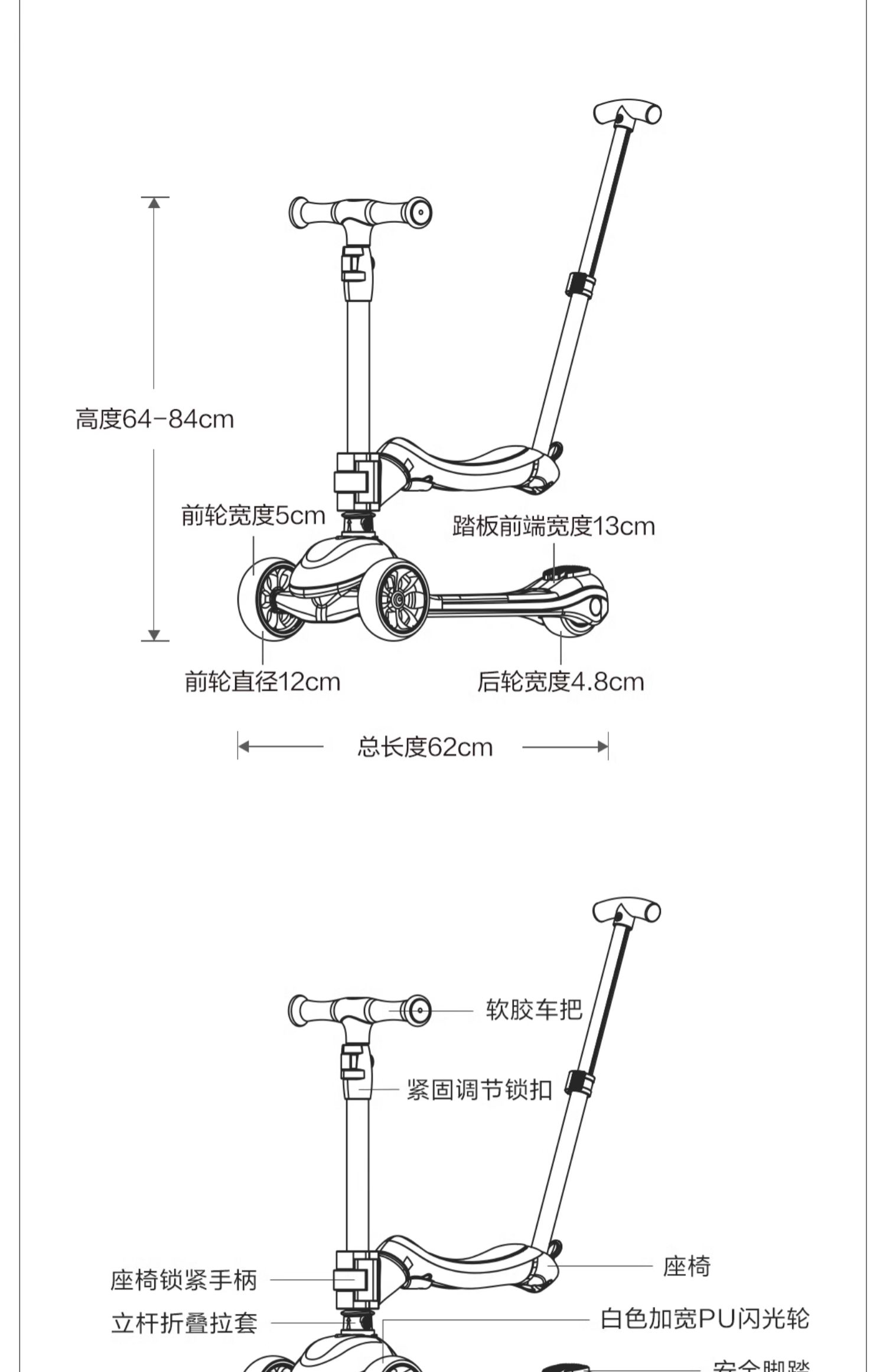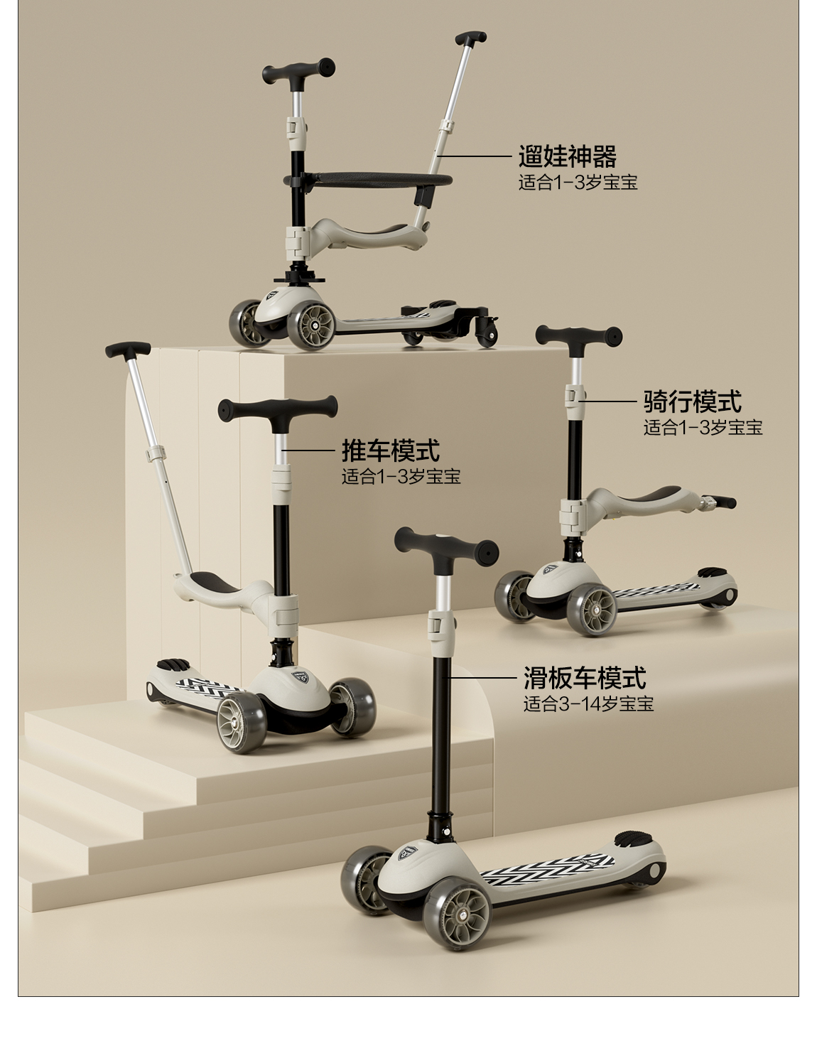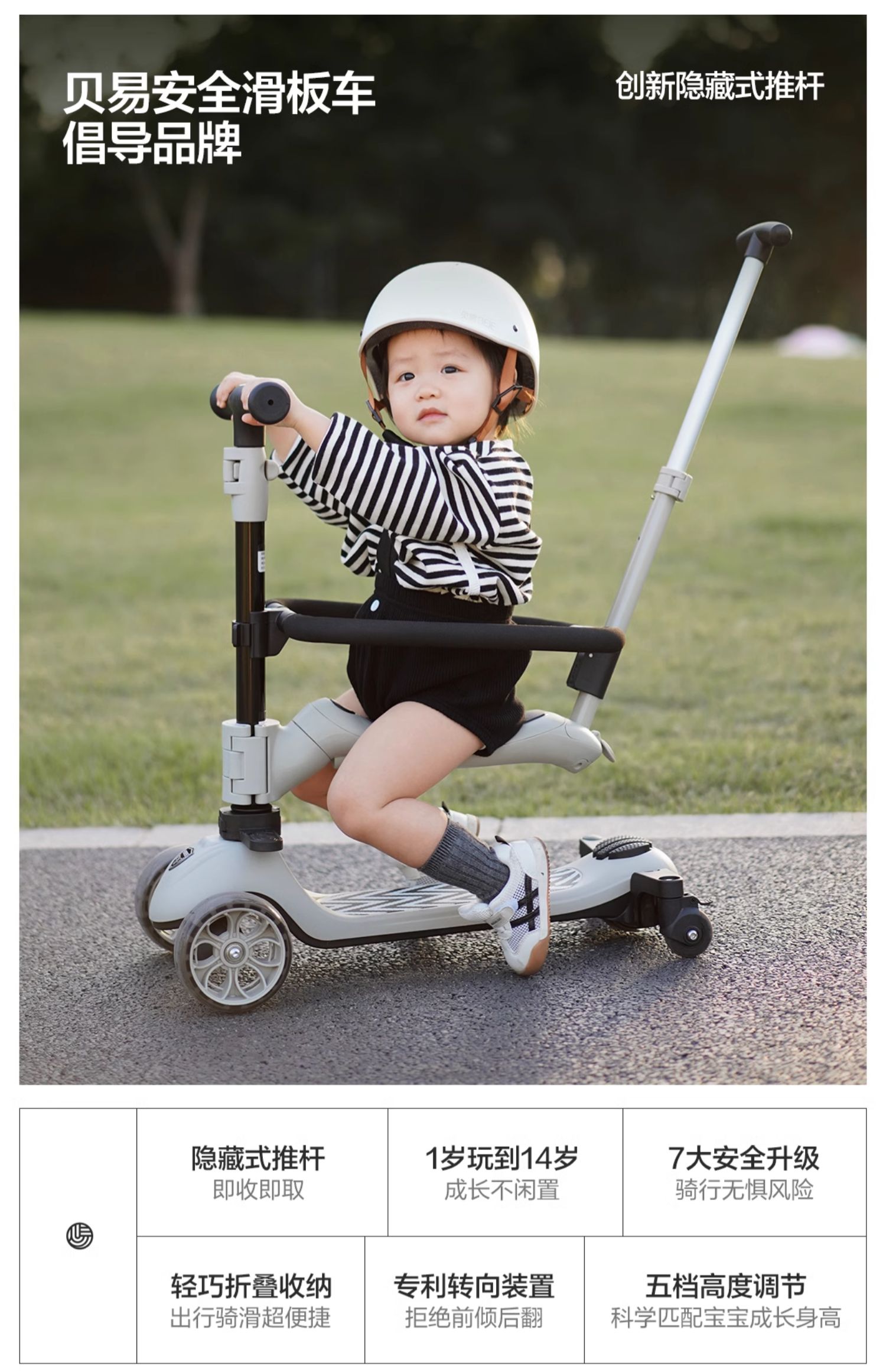 【会员可兑换品】贝易儿童滑板车1到3岁6岁七合一可折叠可座宝宝滑滑学步溜娃神器【至尊滑板车】【会员下单送车筐+308以上送 头盔】