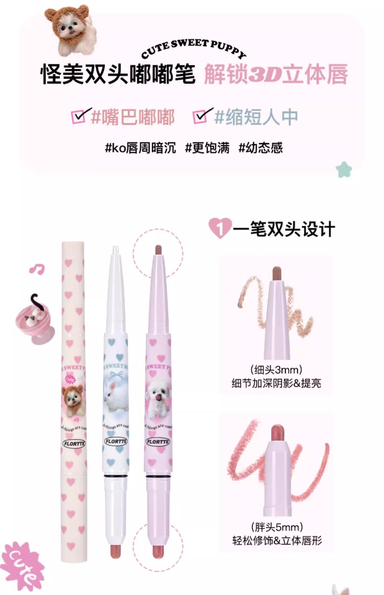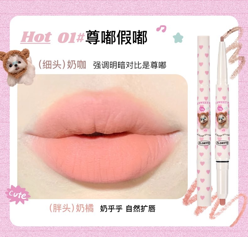 FLORTTE/花洛莉亚怪美莉亚唇线笔裸色哑光自然双头口红笔 心选到家