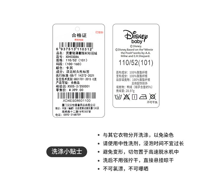 迪士尼超酷顽童冬季男童上衣米奇羽绒外套XD4ES086