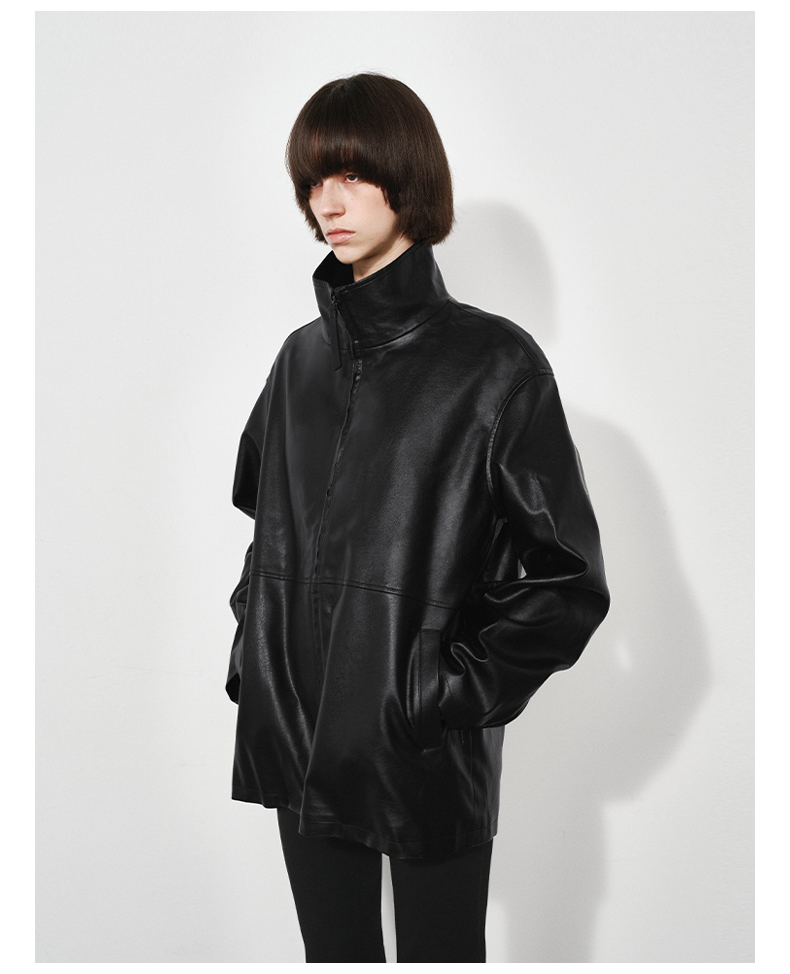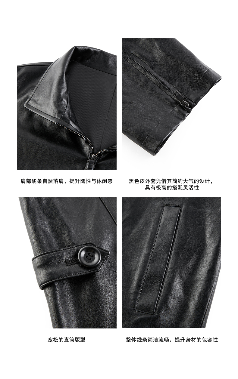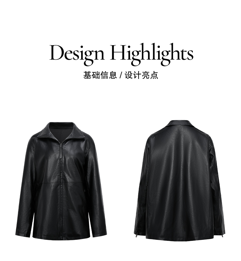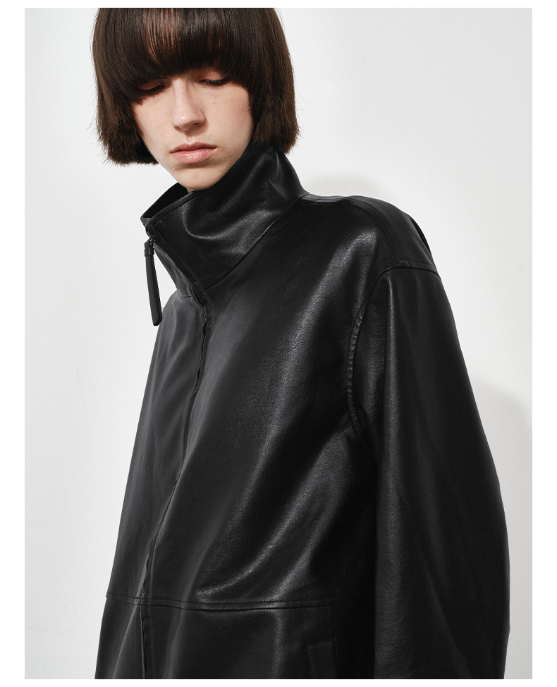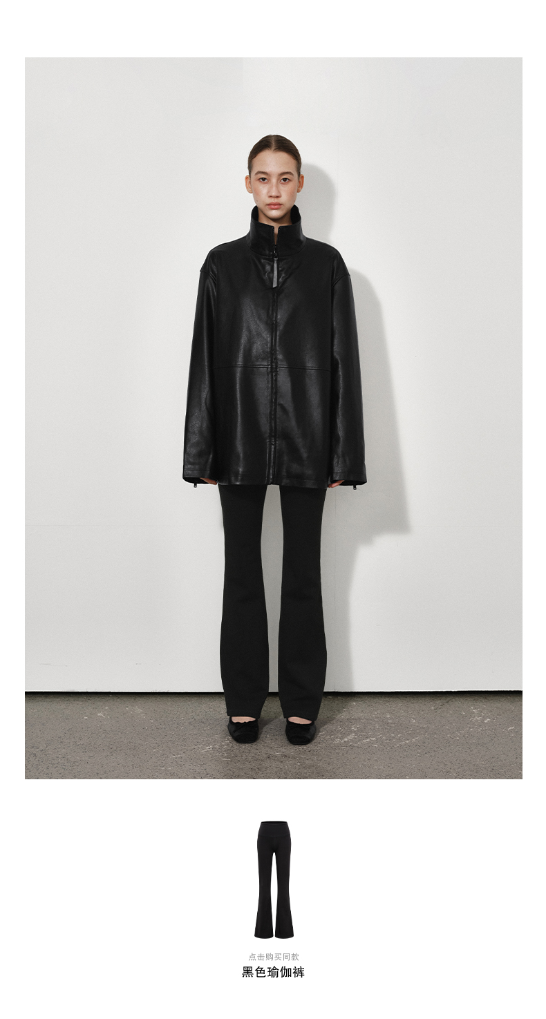 NUTH黑色宽松廓形pu皮夹克中长款拉链皮衣外套女