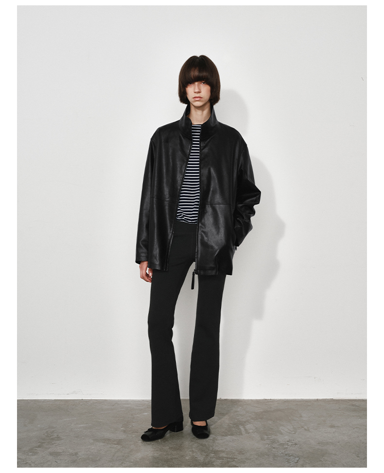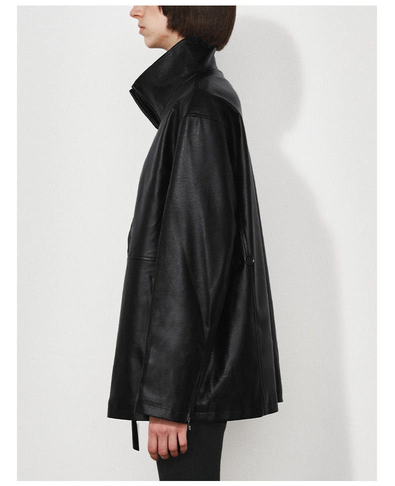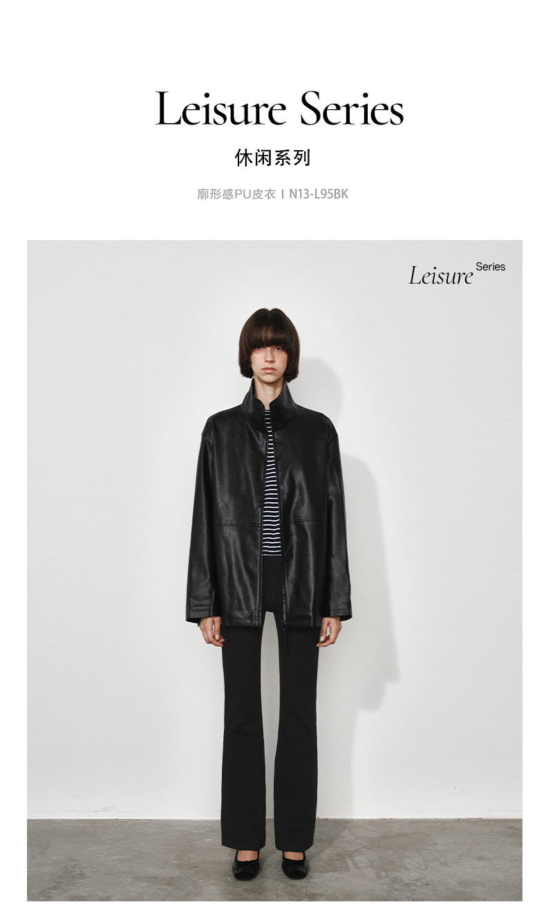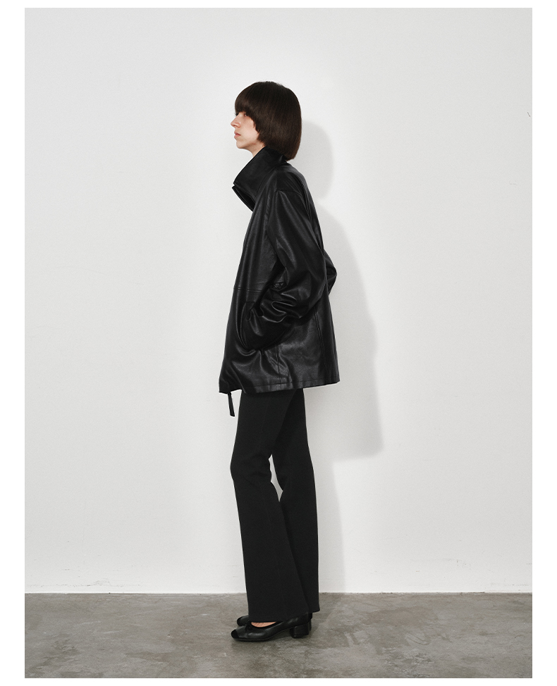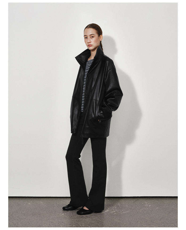 NUTH黑色宽松廓形pu皮夹克中长款拉链皮衣外套女