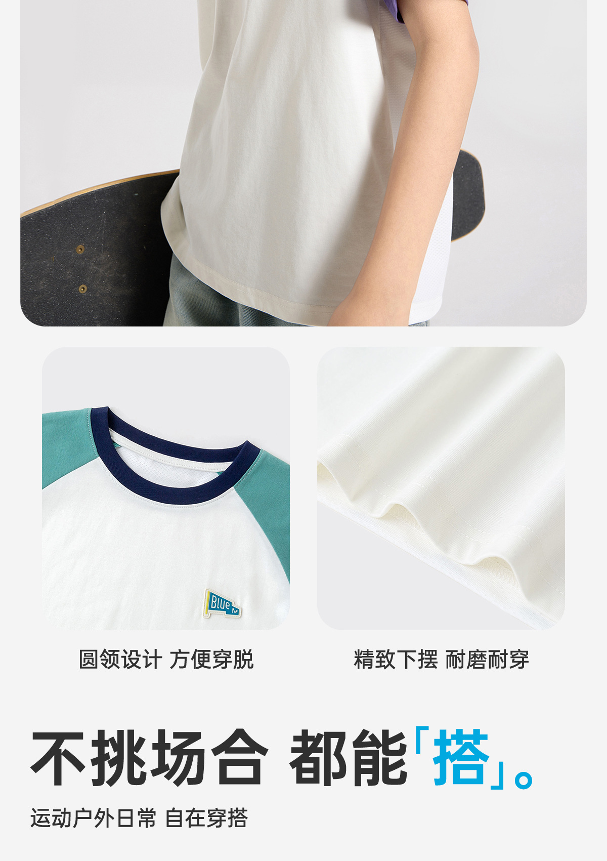 【清促】Bluem儿童短袖T恤插肩袖夏季男童短袖透气凉感男大童夏装