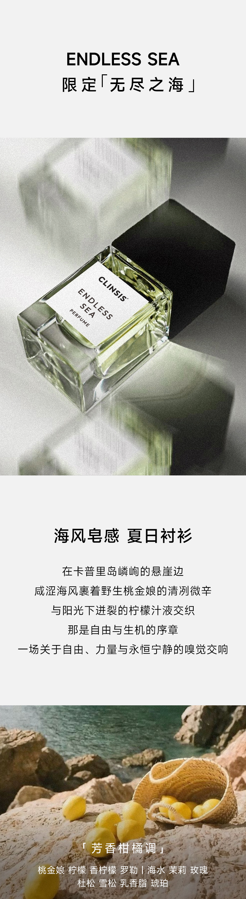 中调茉莉的洁净感与玫瑰的微甜被咸涩的海水调和,形成“海风拂面般的通透感;