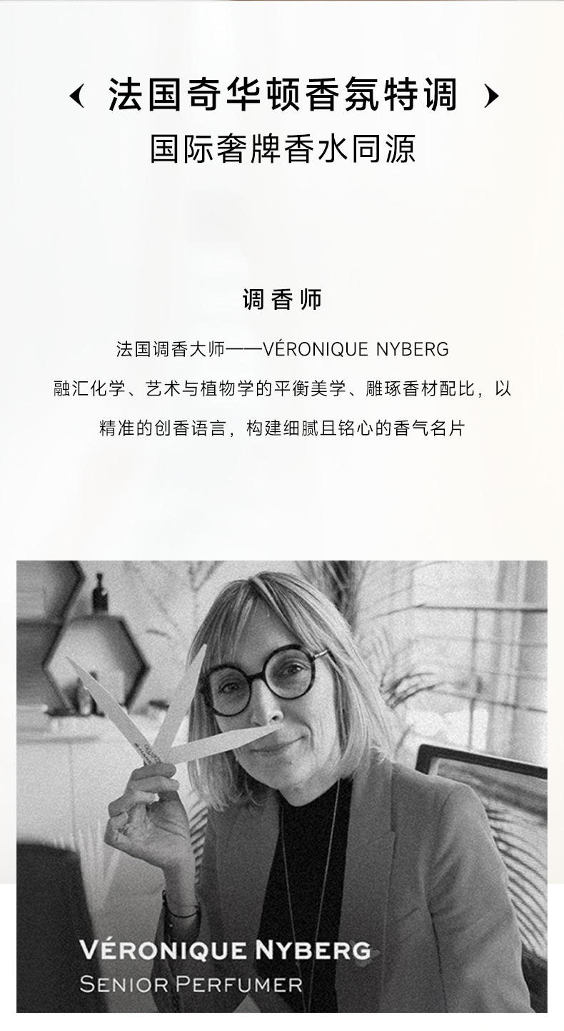 尾调木质香气逐渐凸显,雪松的冷冽与琥珀的温润融合,伴随干净的皂感,宛如“刚沐浴后的肌肤”,安心舒适的氛围~