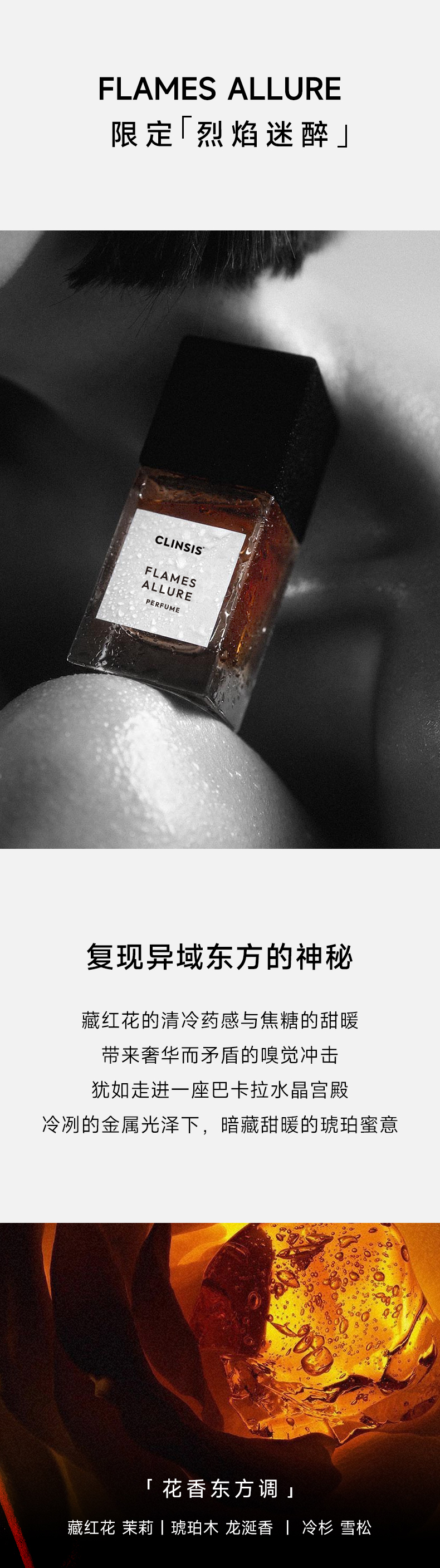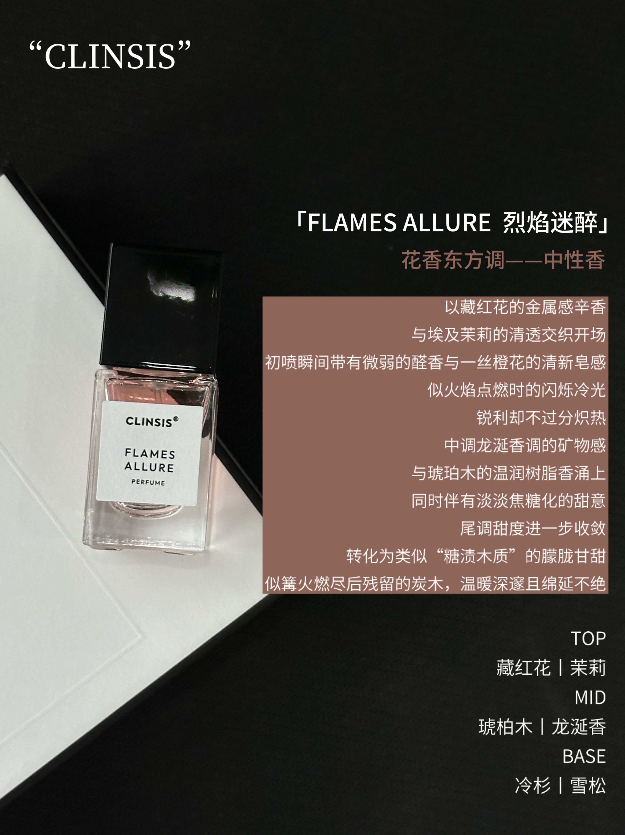 以藏红花的金属感辛香与埃及茉莉的清透白花气息交织开场,初喷瞬间带有微弱的醛香与一丝橙花的清新皂感似火焰点燃时的闪烁冷光,锐利却不过分炽热;