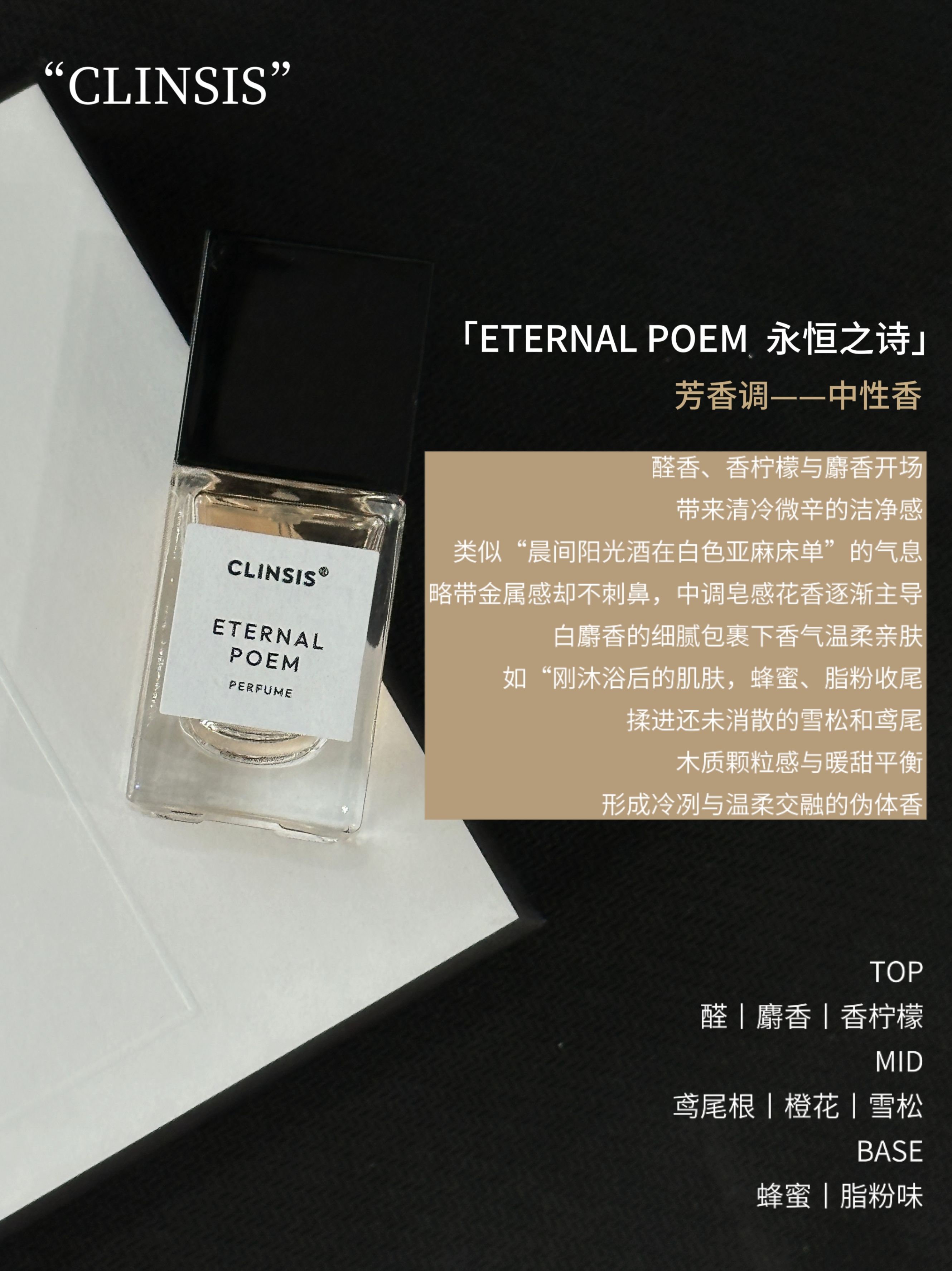 蜂蜜、脂粉收尾,揉进还未消散的雪松和鸢尾,木质颗粒感与暖甜平衡,形成冷冽与温柔交融的伪体香