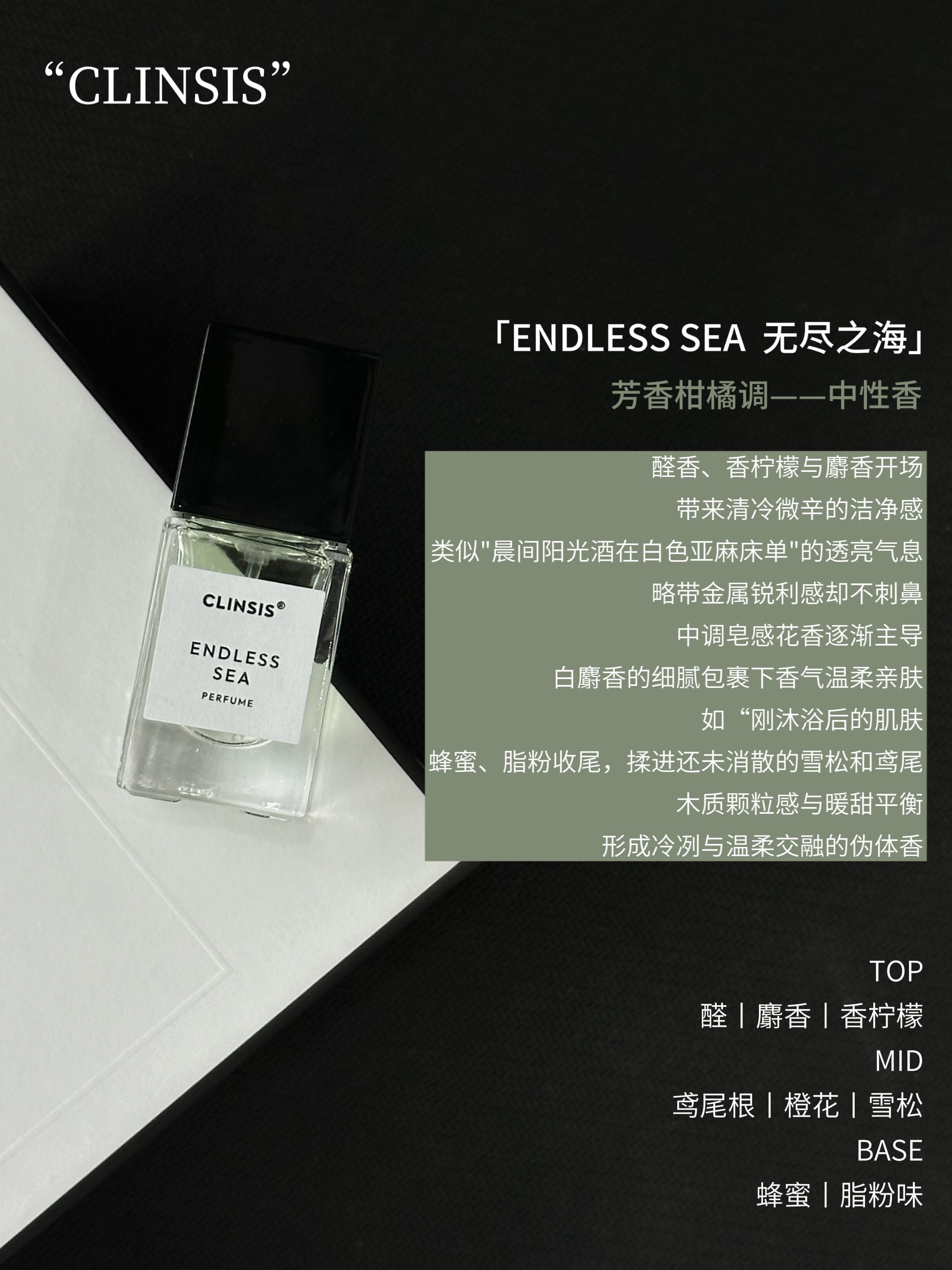醛香、香柠檬与麝香开场,带来清冷微辛的洁净感,类似“晨间阳光酒在白色亚麻床单”的透亮气息,略带金属锐利感却不刺鼻。