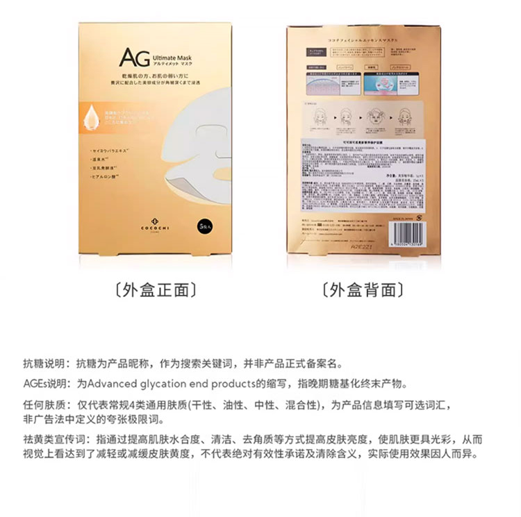 COCOCHI/蔻蔻琪AG抗糖修护补水面膜25ml+1g/枚*5枚/盒