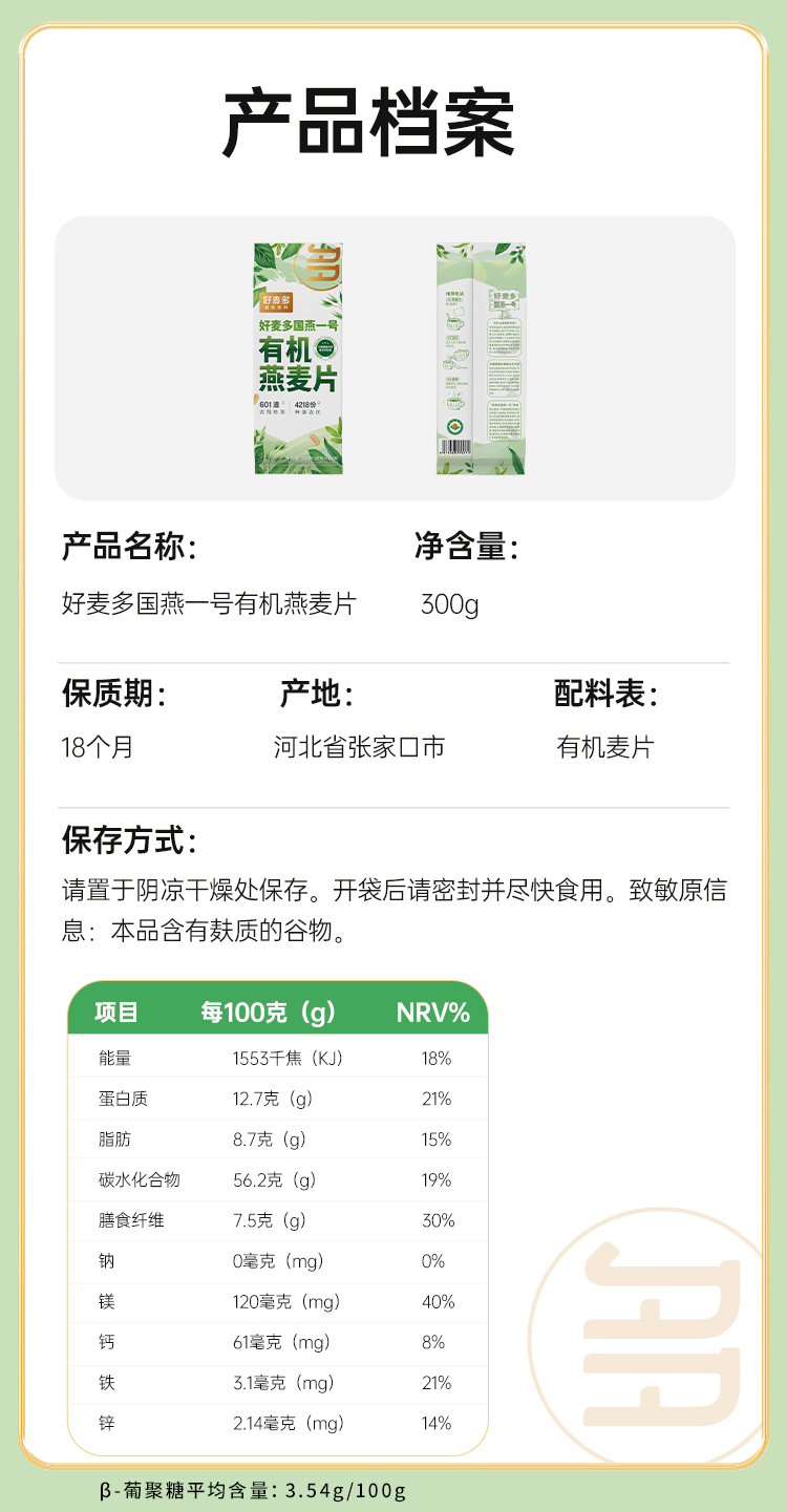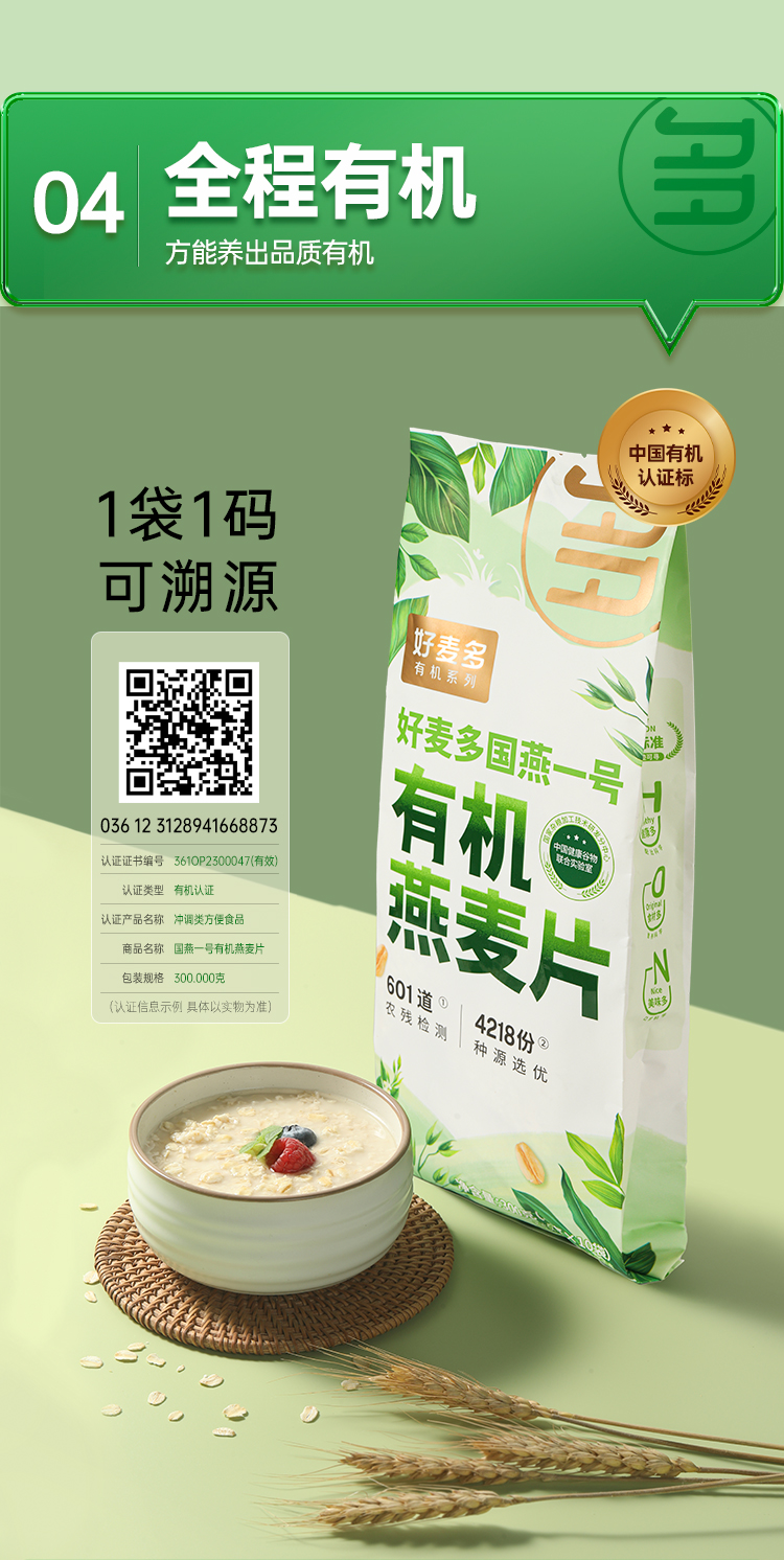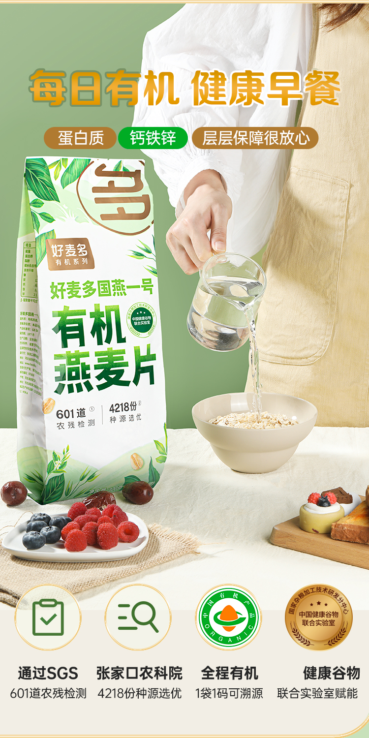 【好麦多国燕一号有机纯燕麦片】甄选有机麦片 牛奶冲泡 口感顺滑 即食速食 从容吃早餐