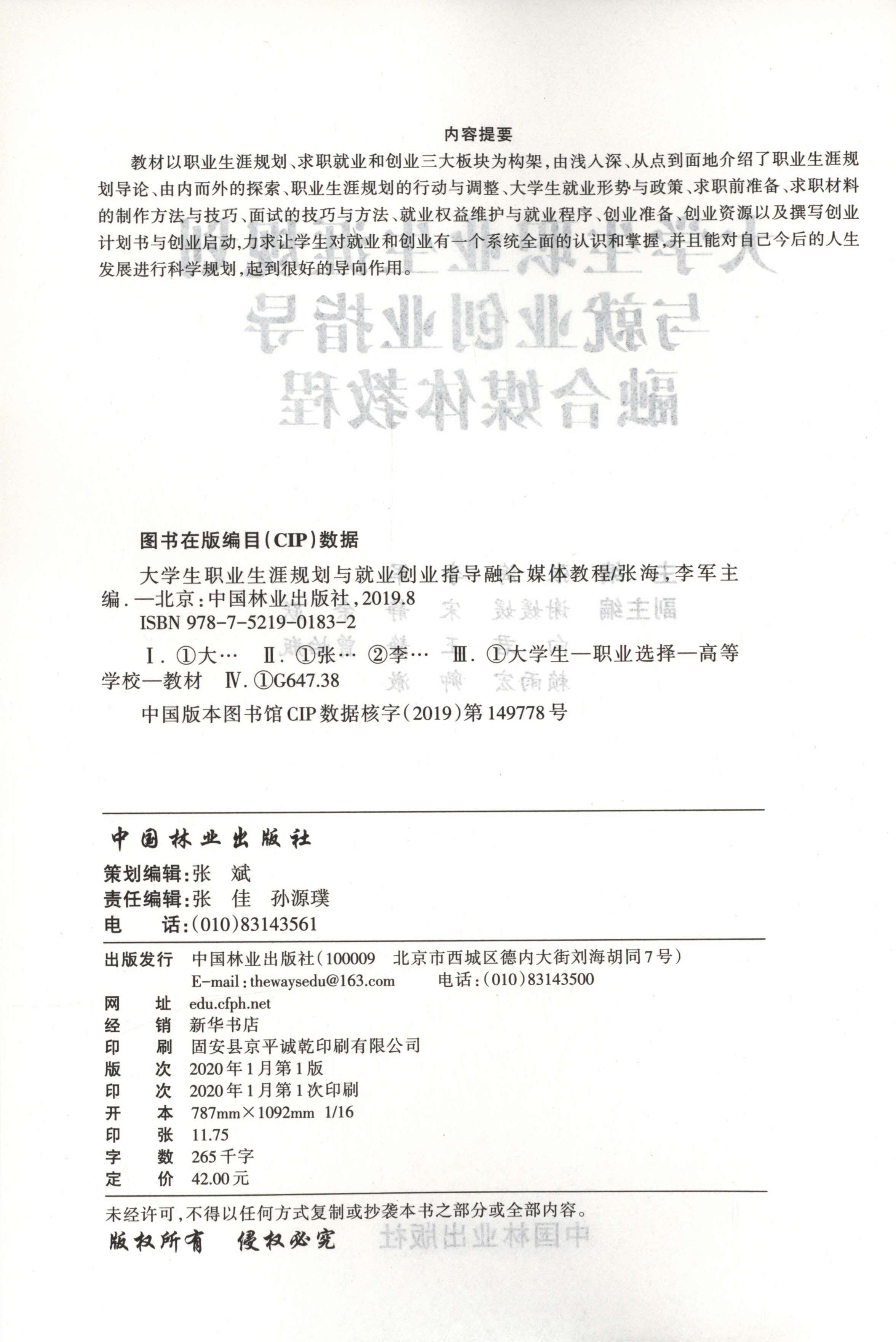 大学生职业生涯规划与就业创业指导融合媒体教程 0183 张海 李军主编 数字融合媒体活页式新形态十三五规划教材 中古哦林业出版社