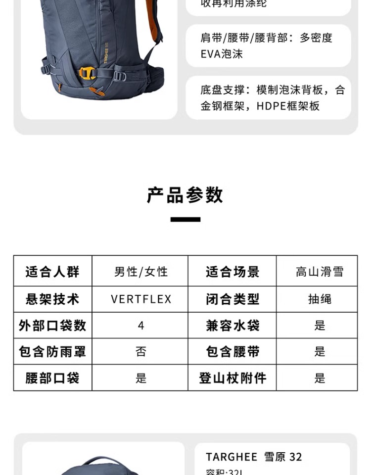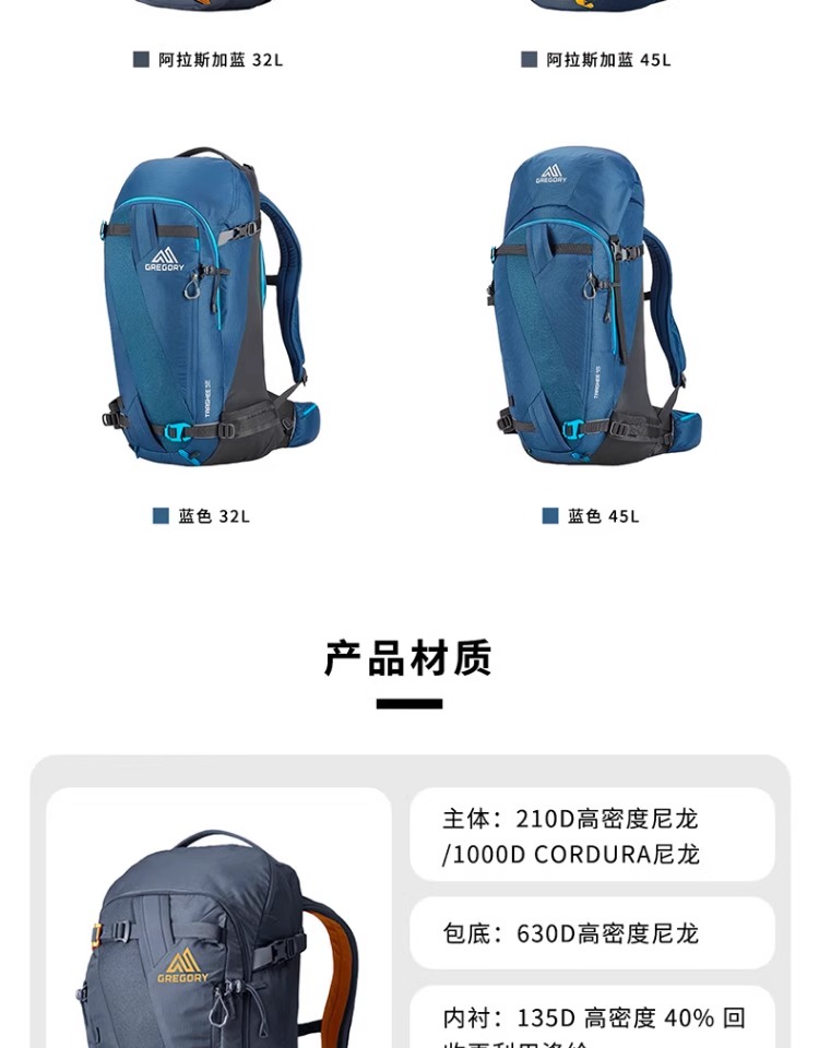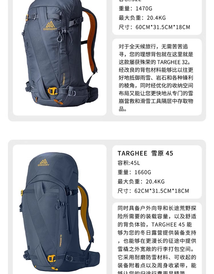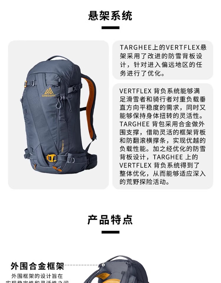 Gregory格里高利TARGHEE 雪原 新款户外专业登山双肩背包雪山攀登