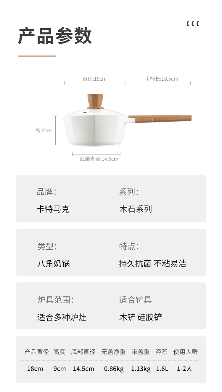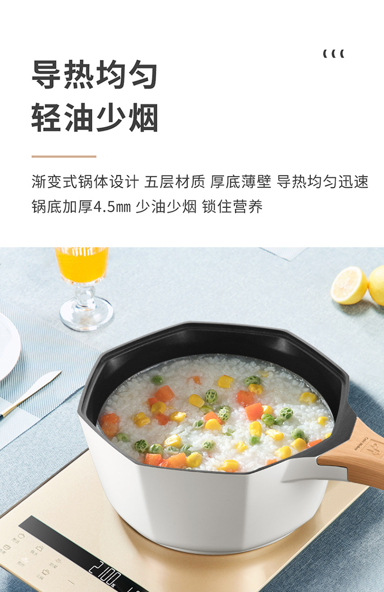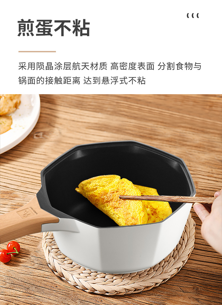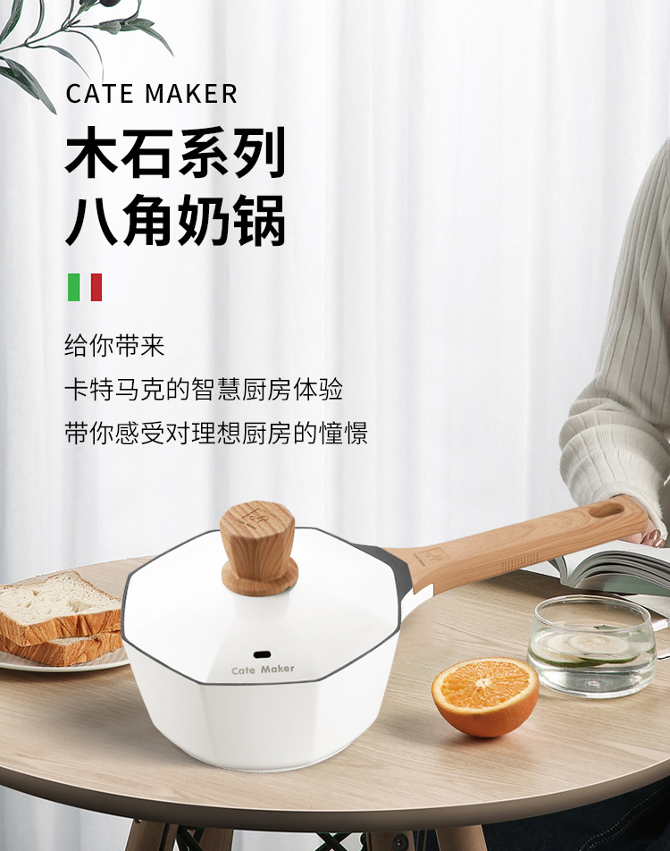 意大利卡特马克 八角奶锅不粘锅麦饭石色煮面汤锅煎锅家用婴儿宝宝辅食锅奶锅平底煎蛋加深锅具厨具 心选到家