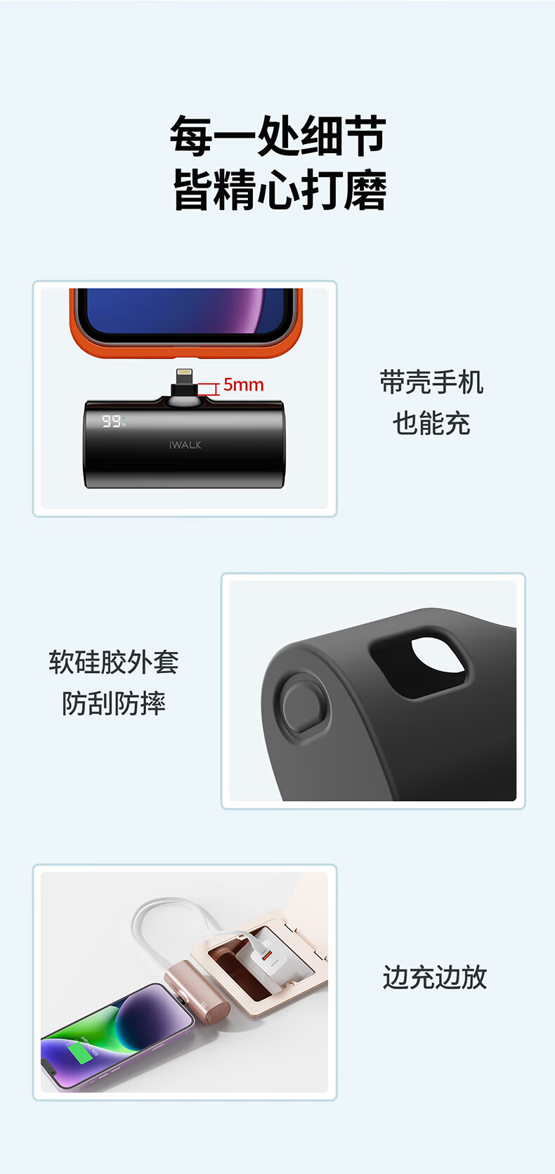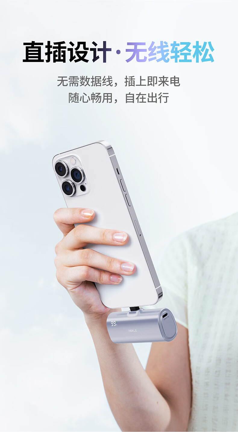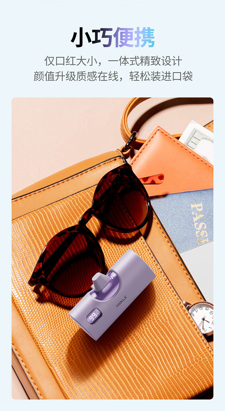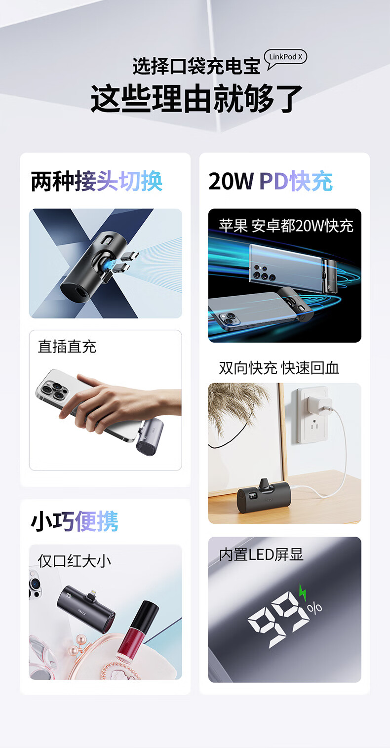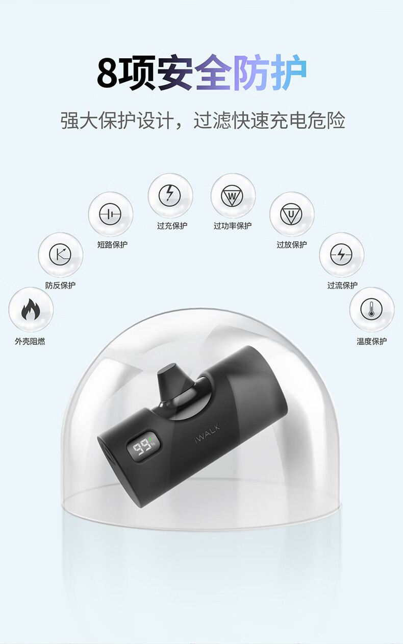 【国家3C认证】爱沃可(iWALK)LPX001胶囊充电宝PD快充20w小巧便携可换接头适用苹果iphone15华为小米安卓迷你便携应急电源
