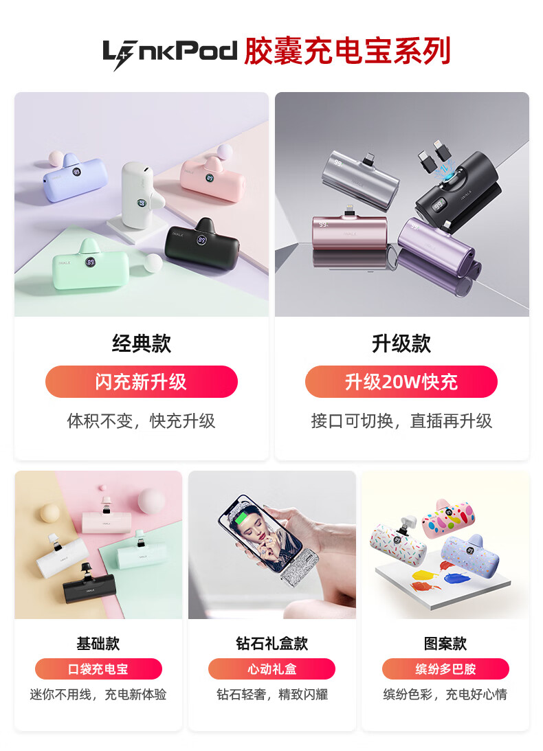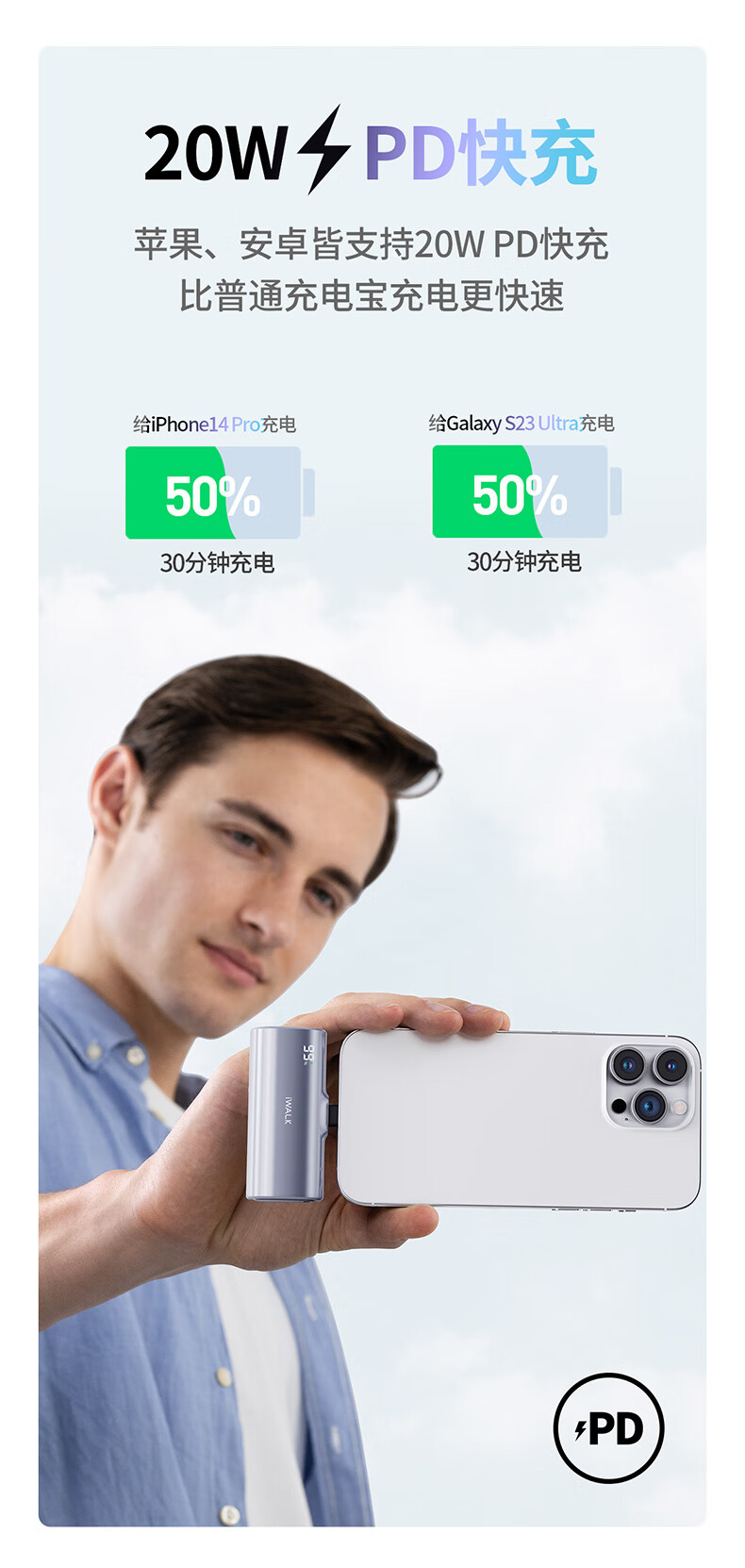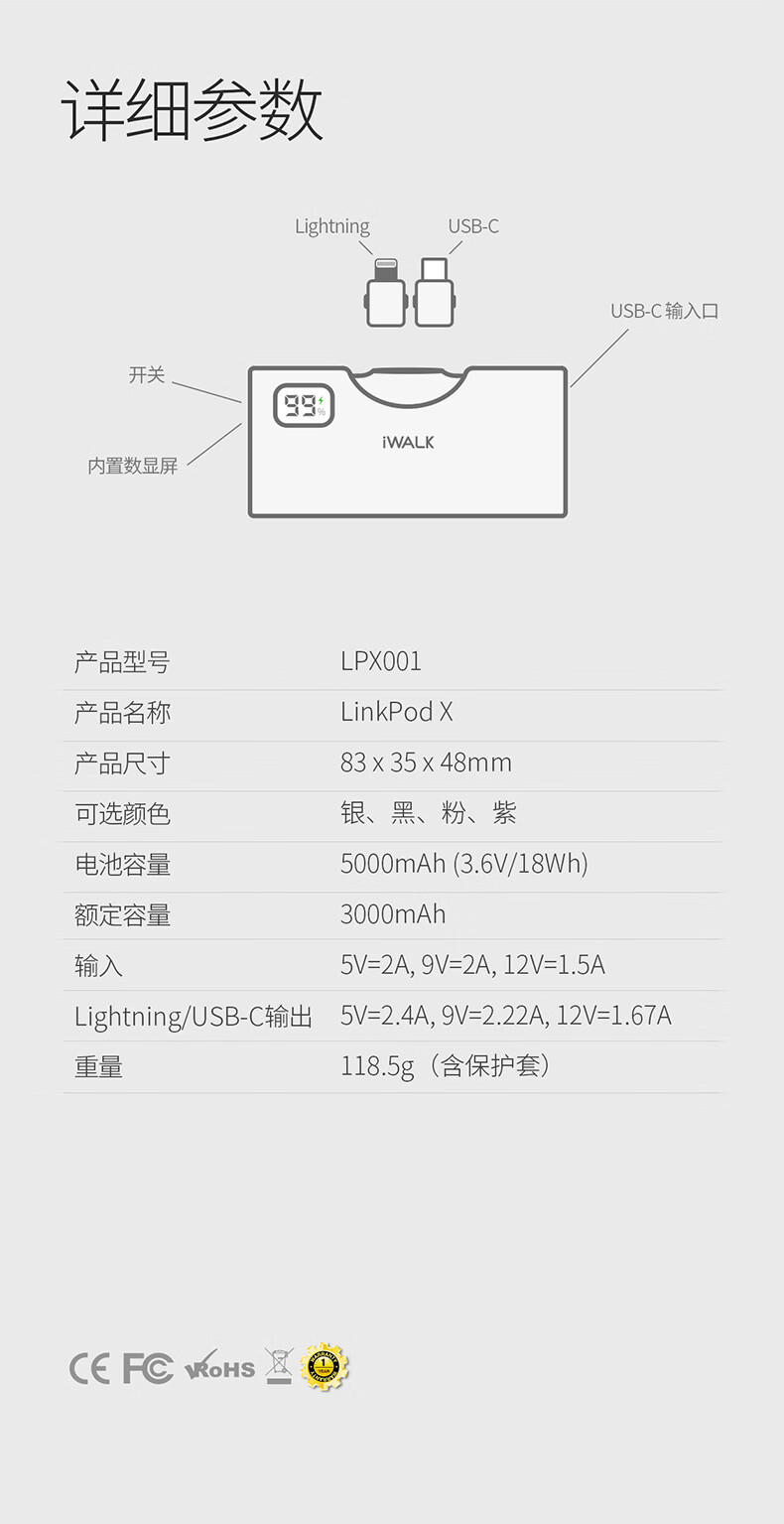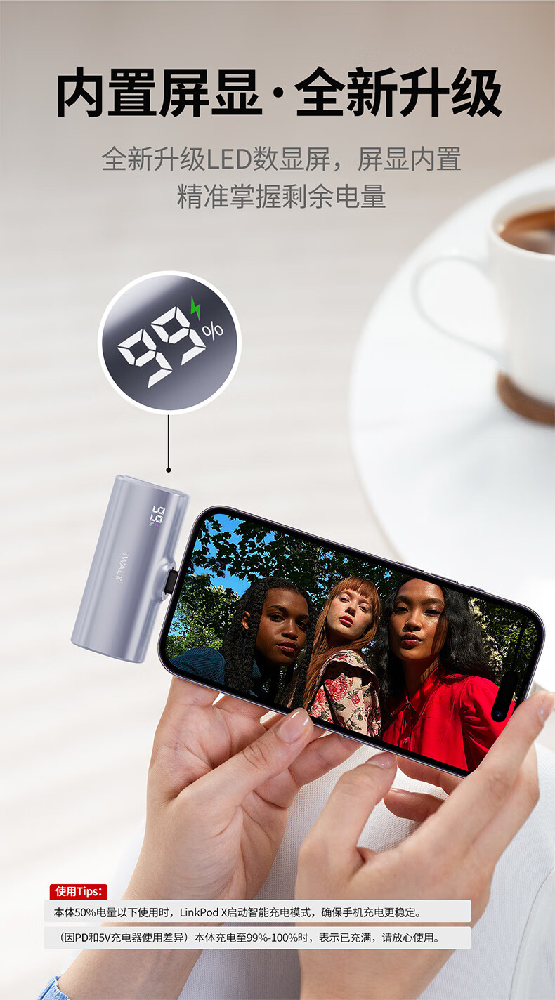 【国家3C认证】爱沃可(iWALK)LPX001胶囊充电宝PD快充20w小巧便携可换接头适用苹果iphone15华为小米安卓迷你便携应急电源
