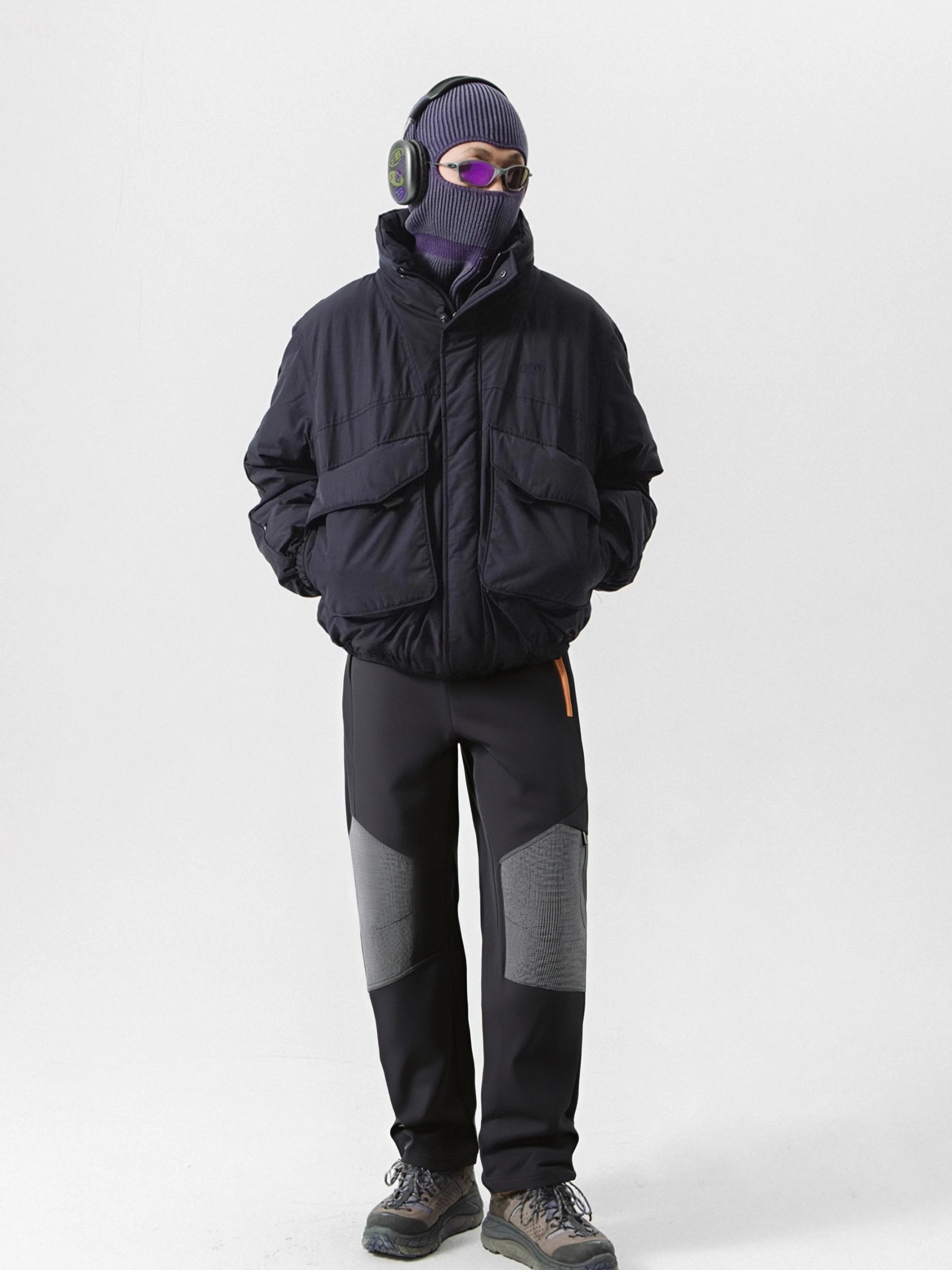它的工艺非常复杂,外层采用功能性梭织面料,所以这条裤子一般的成本都用在面料上!!!