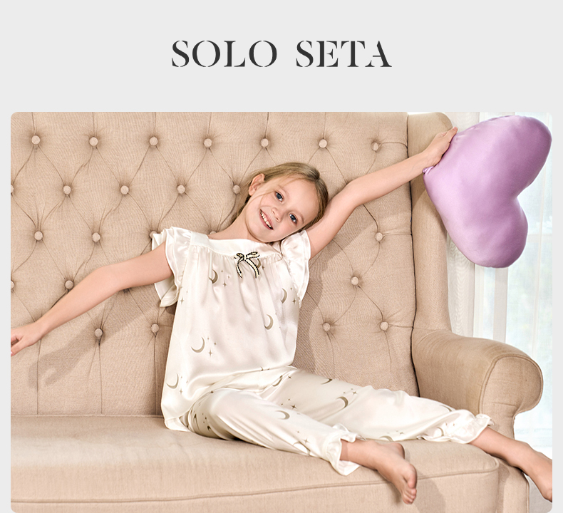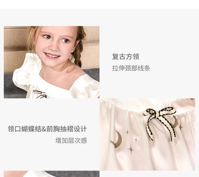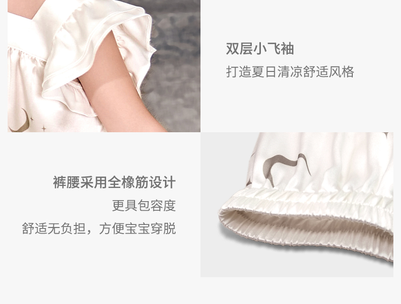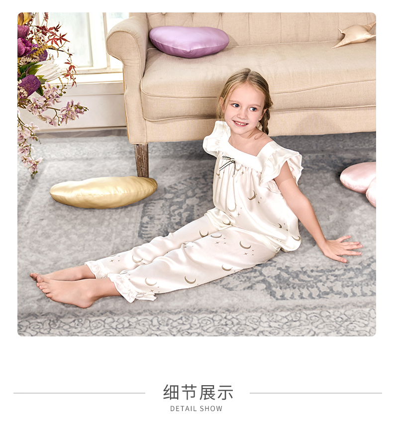 solo seta22姆米真丝儿童印花睡衣套装女桑蚕丝可爱家居服丝绸新