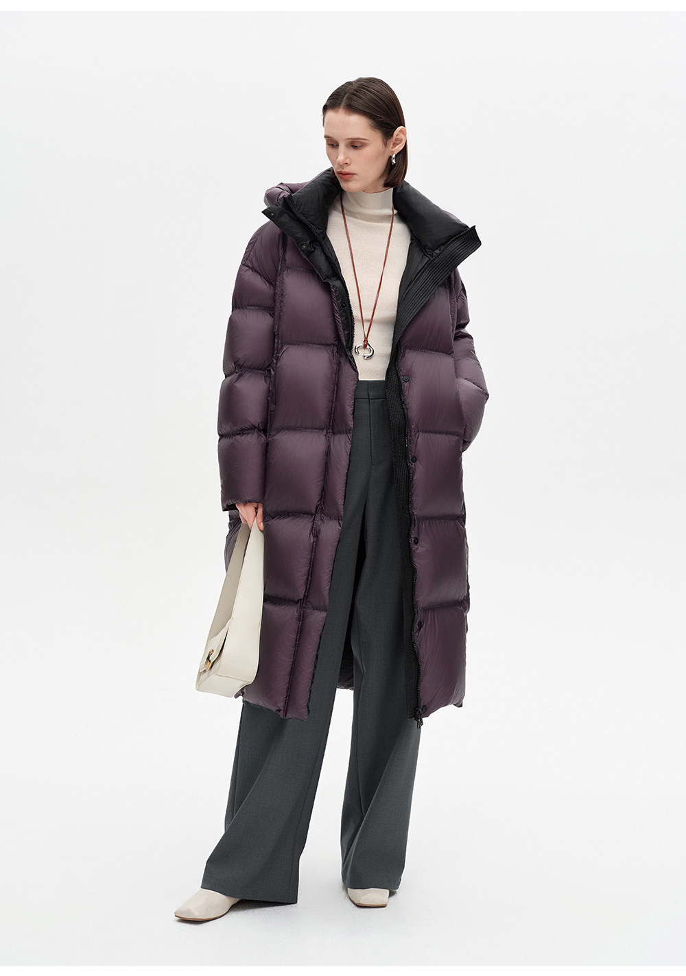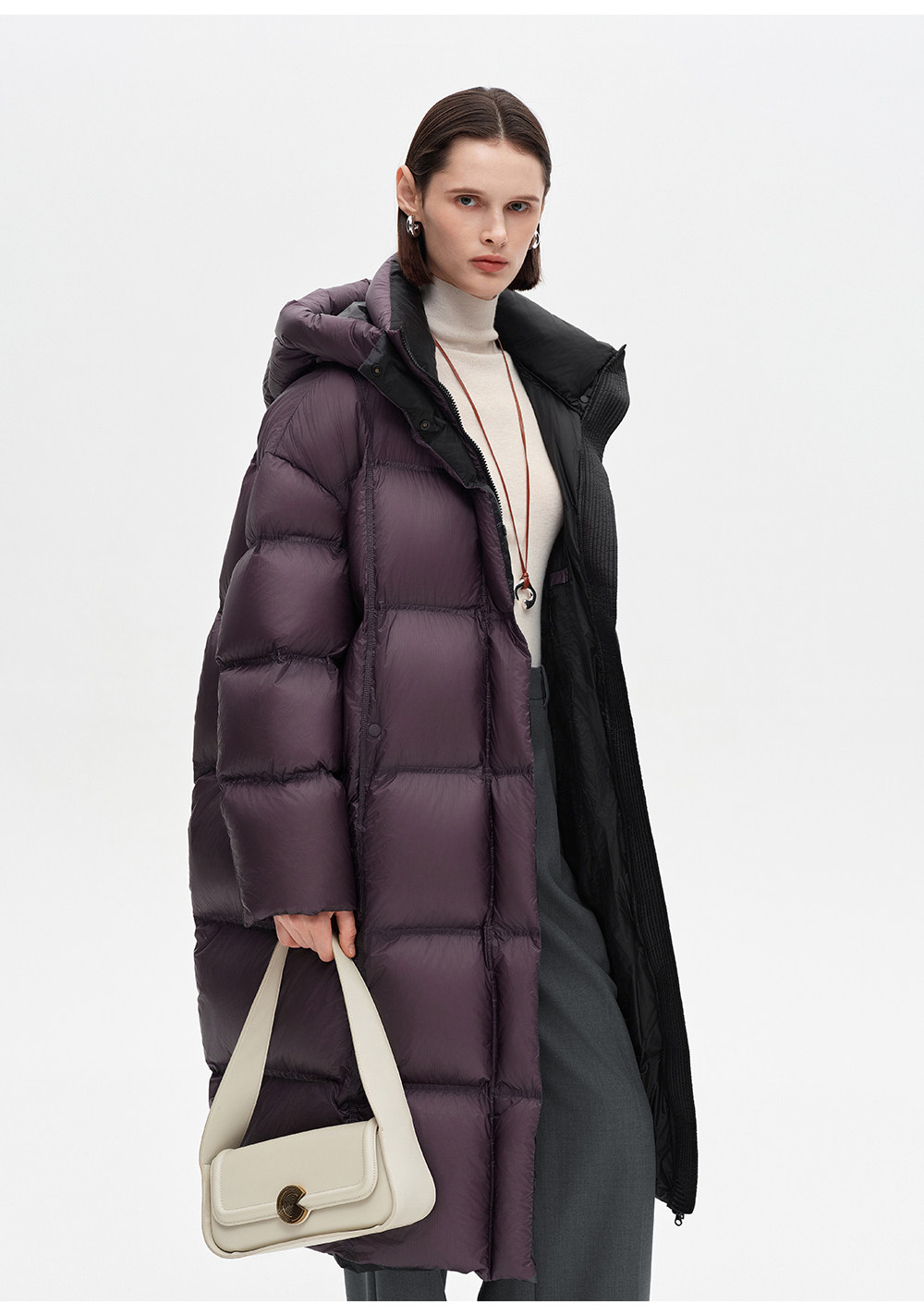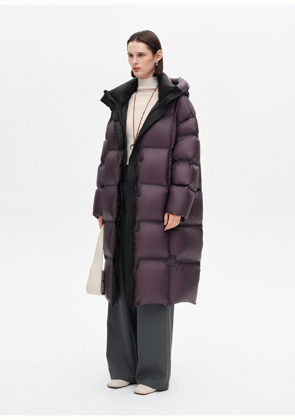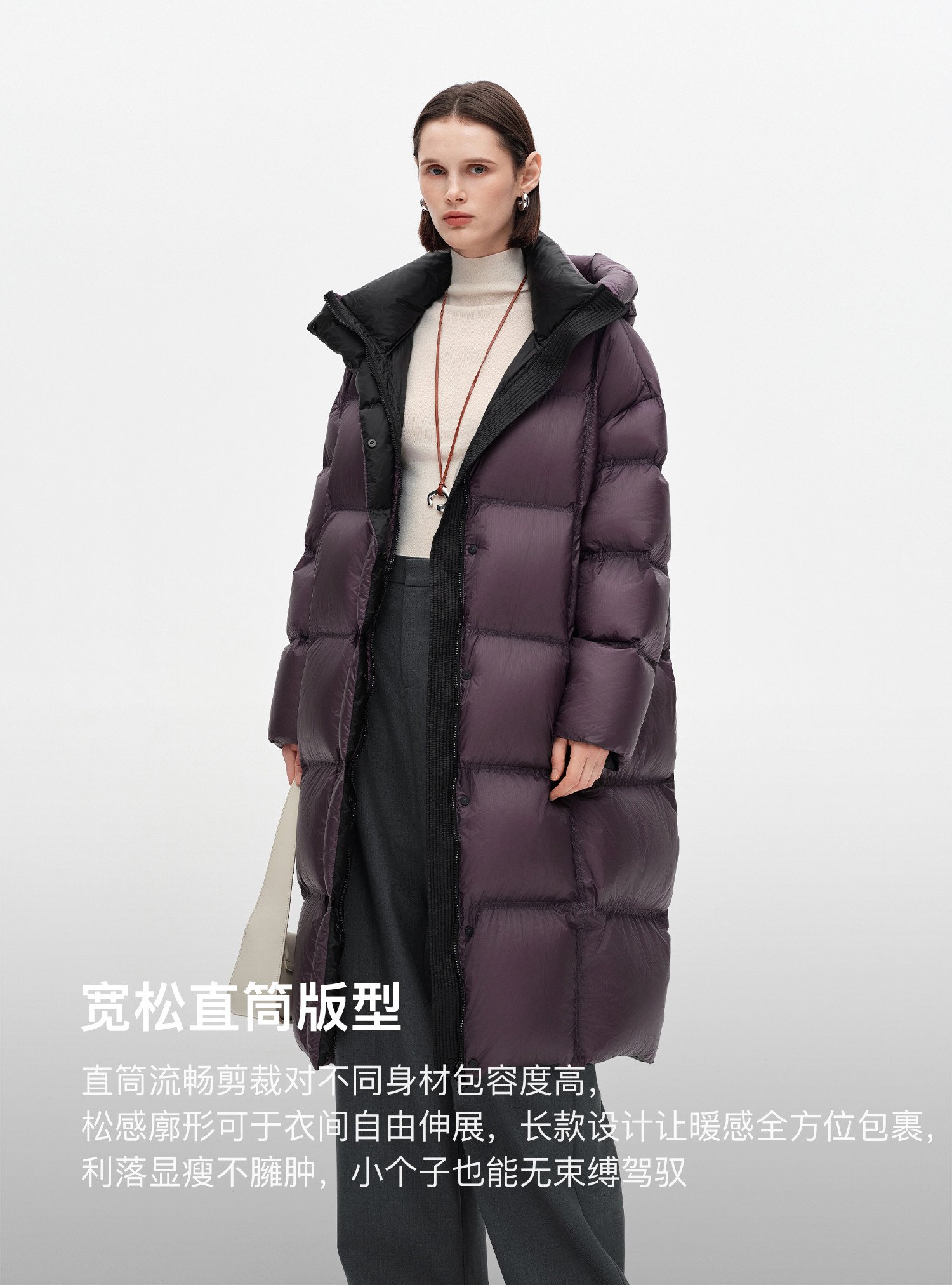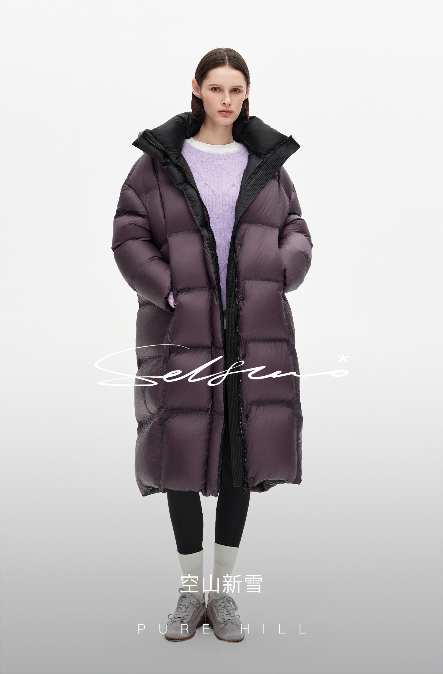 SELFWHO90白鸭绒连帽高领长款羽绒服女2025冬季新款防风保暖外套