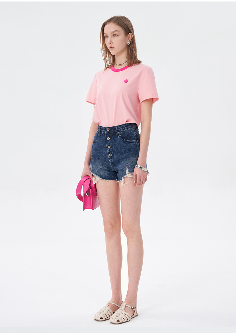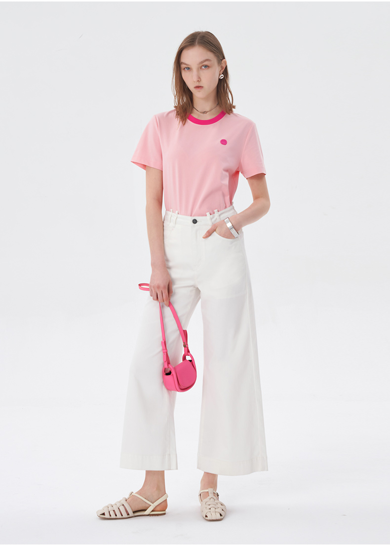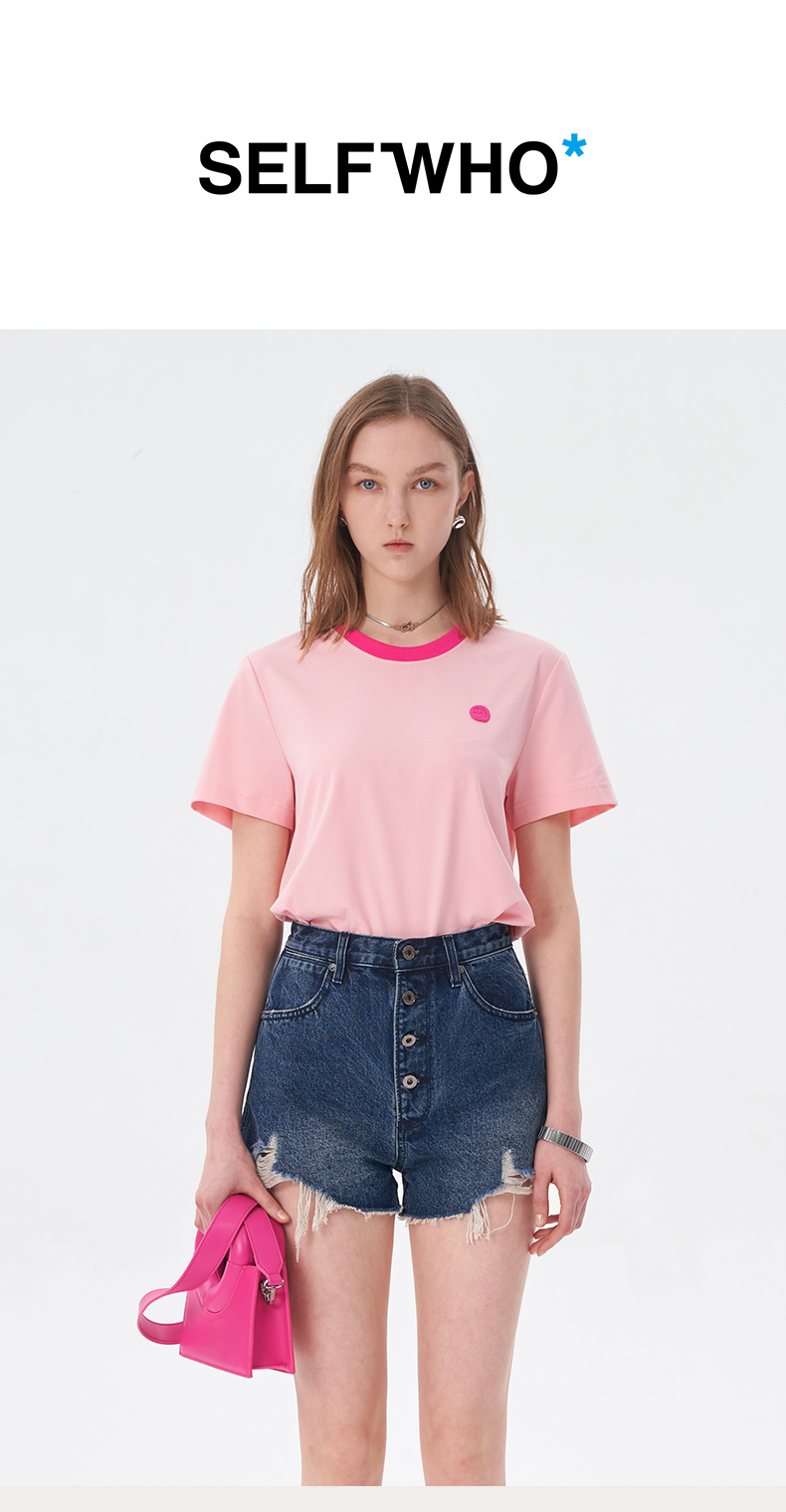 Self Who2023夏装新款索罗娜简约纯色T恤显瘦显白短袖女百搭单品