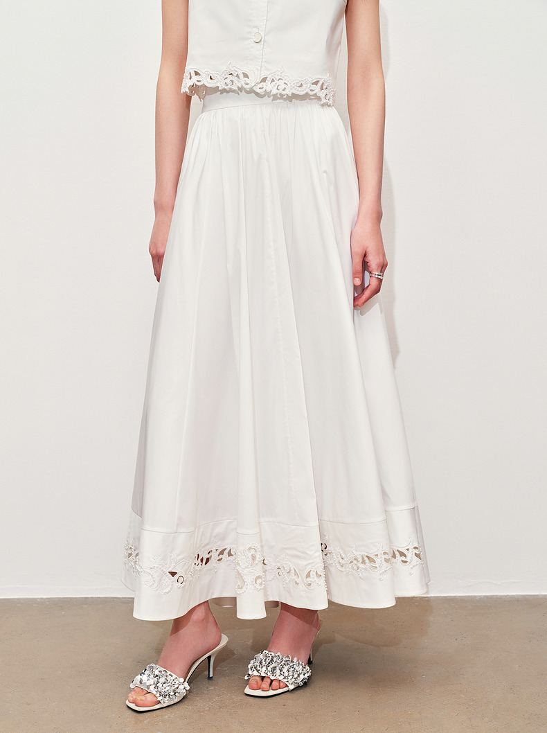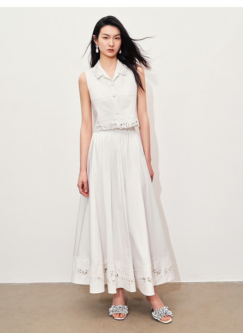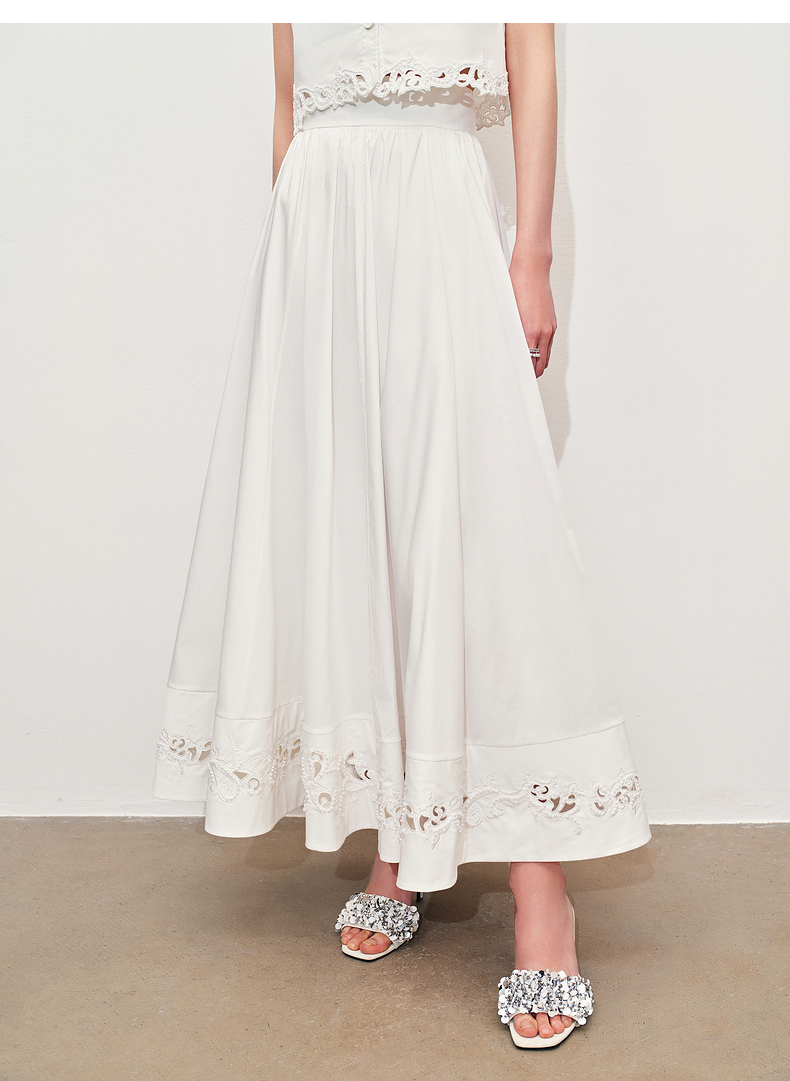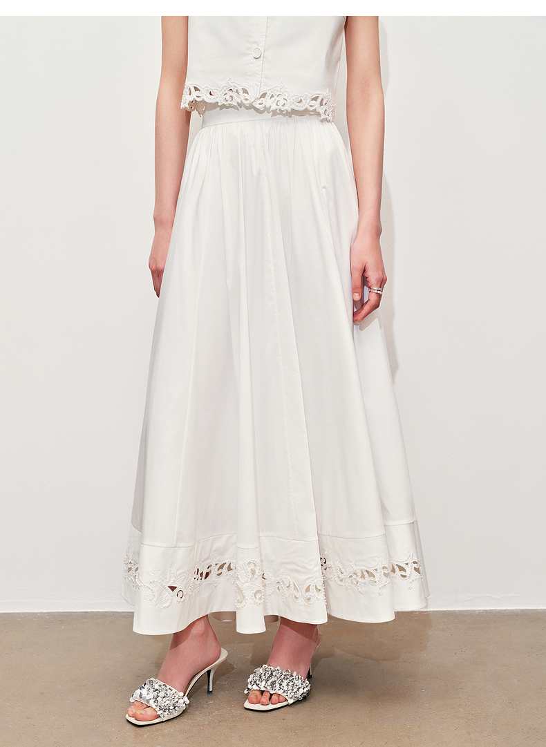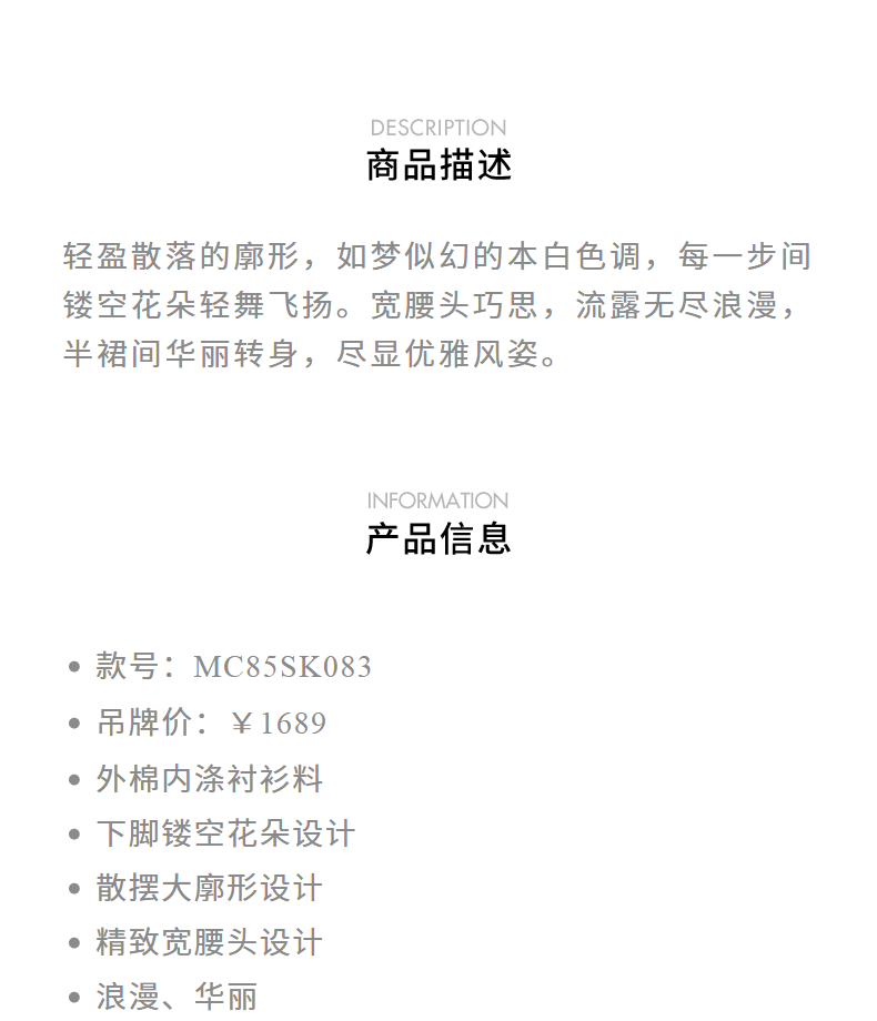玛克门店发货:MAXRIENY浪漫镂空刺绣散摆半裙2024夏款(货号:MC85SK083)