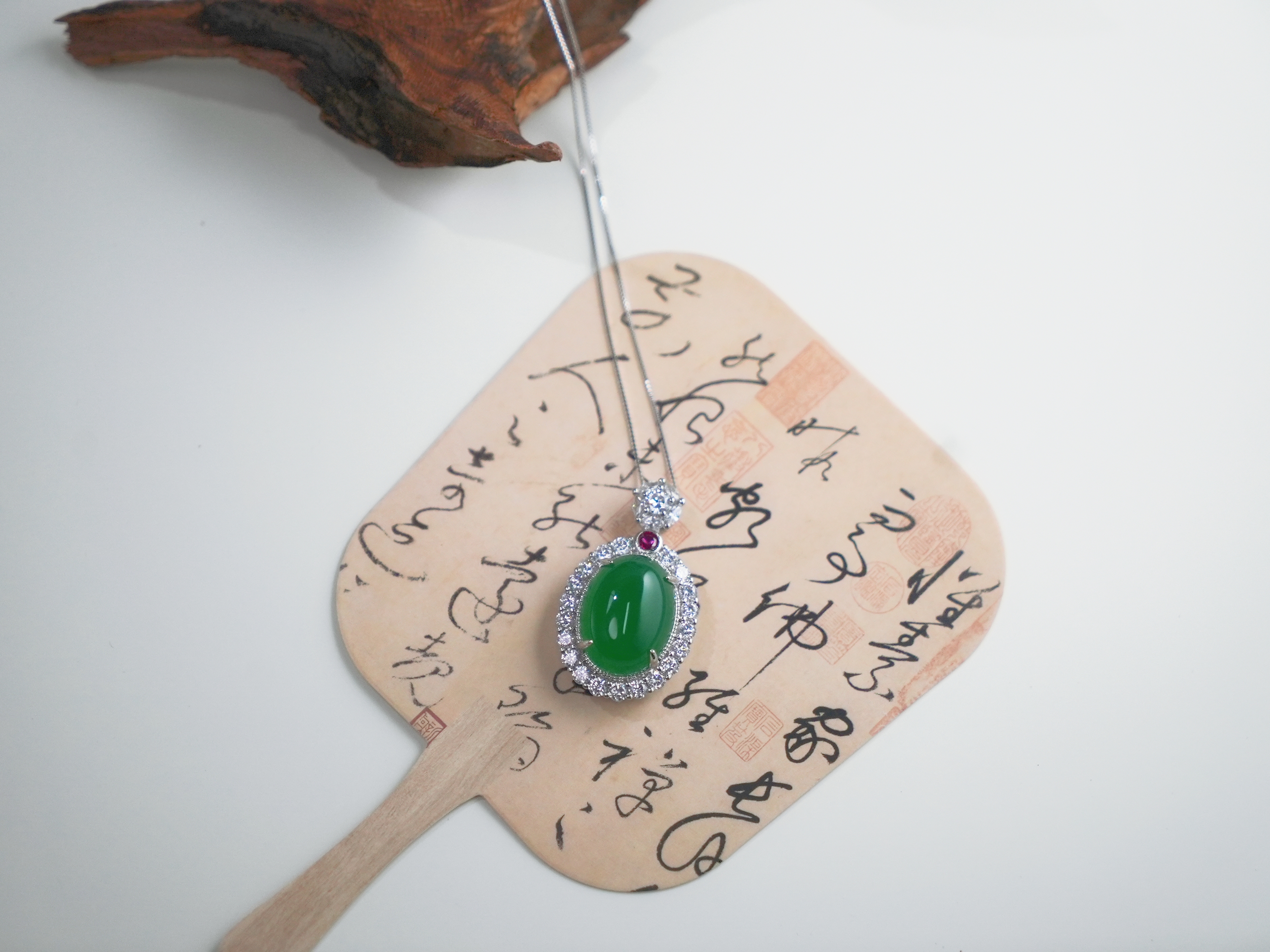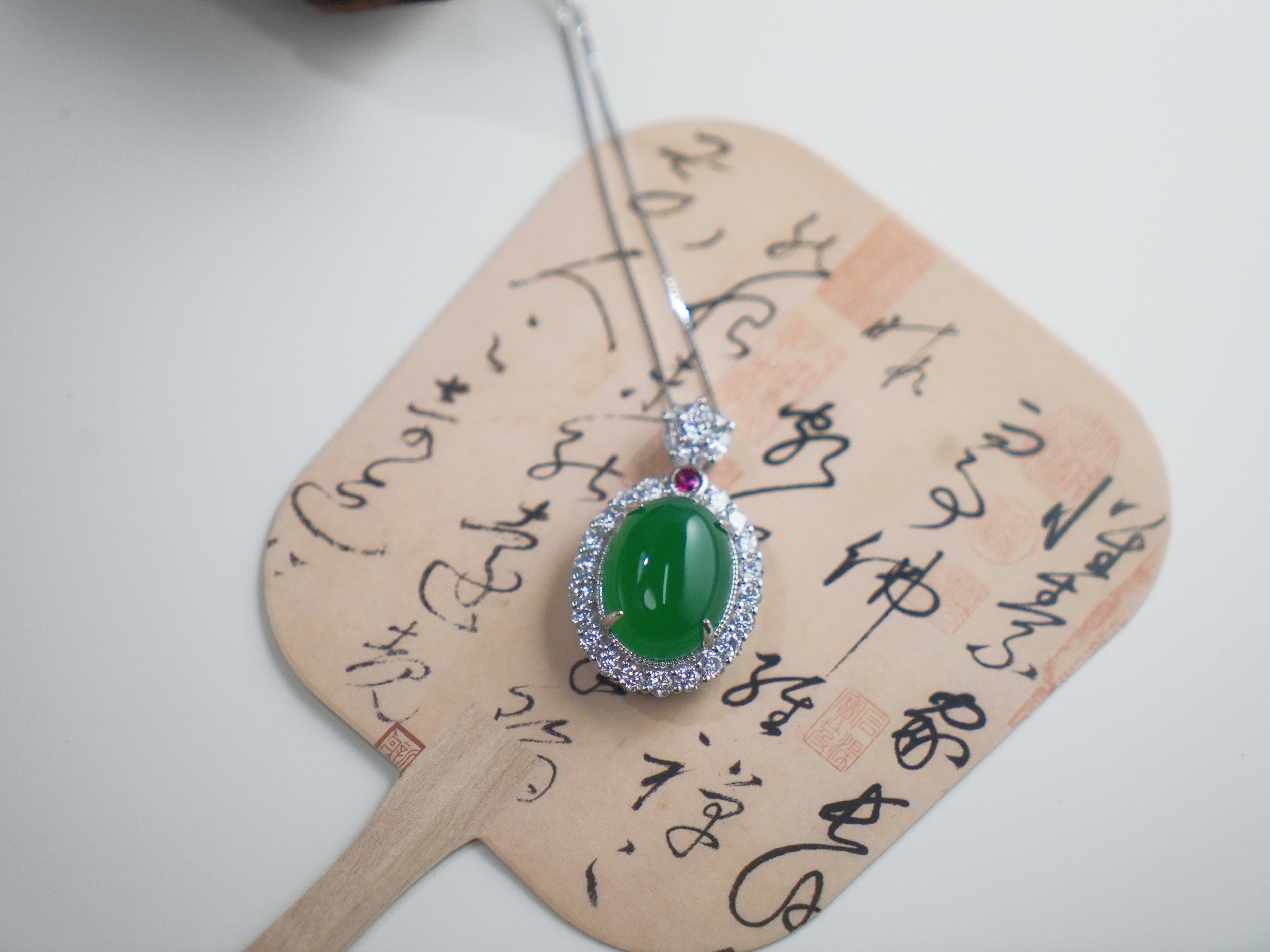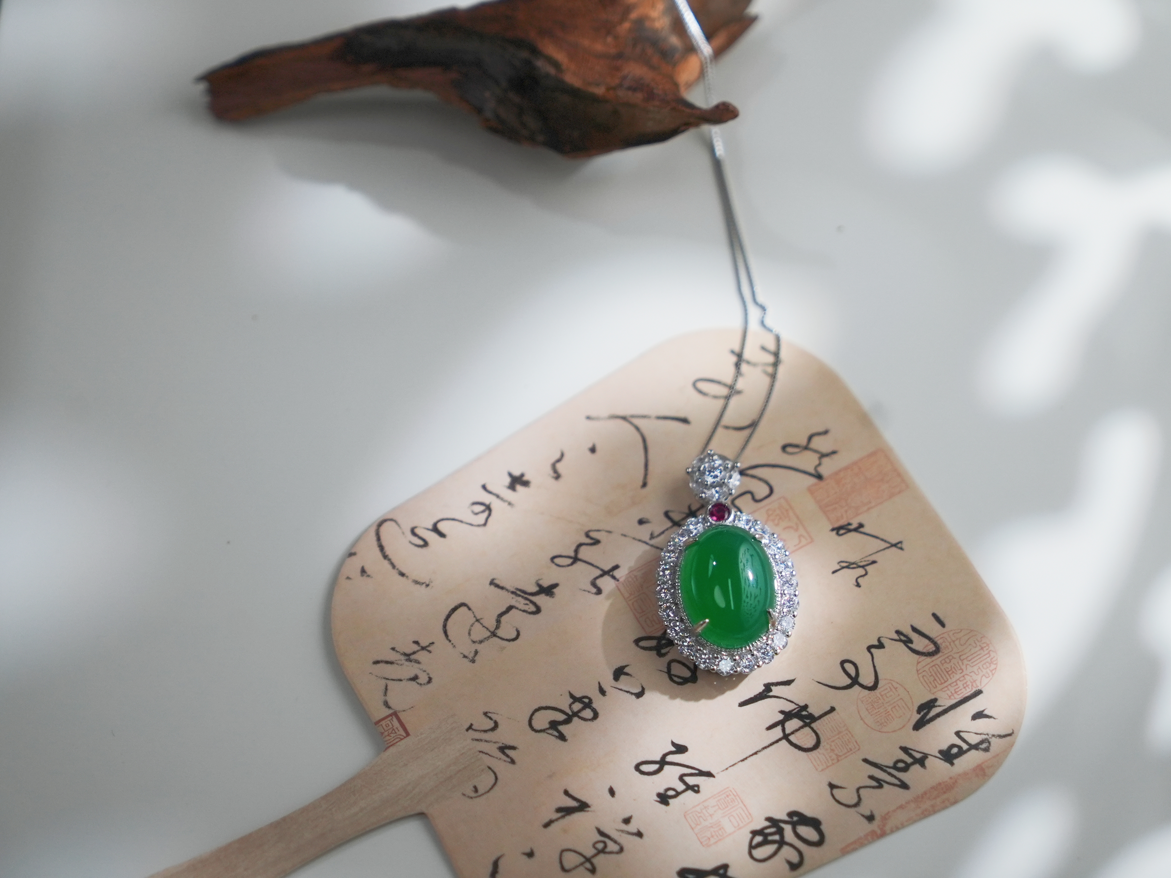 【一乐老师推荐】新中式翠绿大蛋面绿玉髓吊坠项链