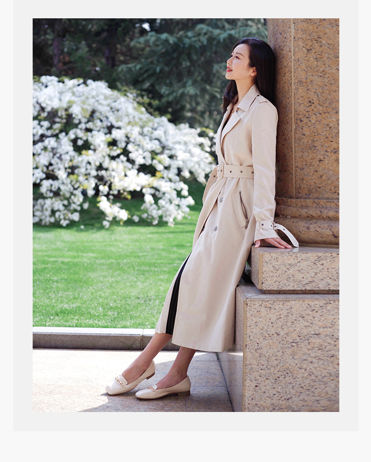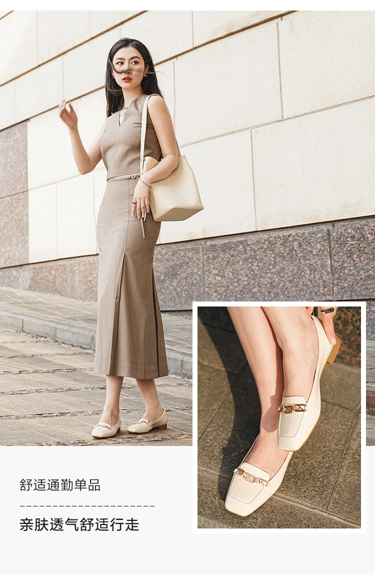 接吻猫新款简约链条芭蕾乐福鞋舒适方头粗跟平底单鞋女