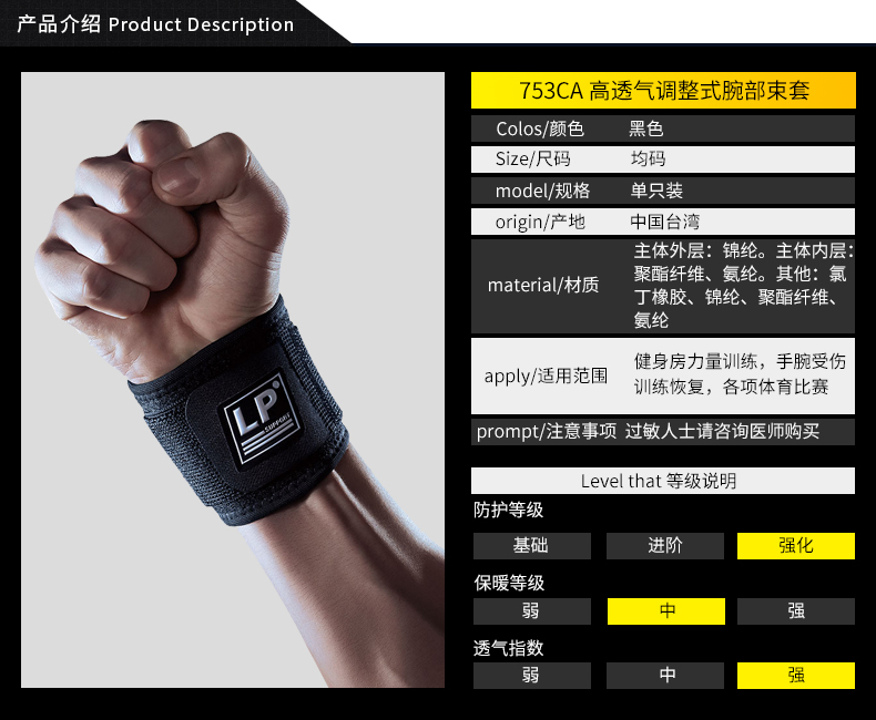 LP 护踝 高透气调整式腕部束套753CA(均码单支装)