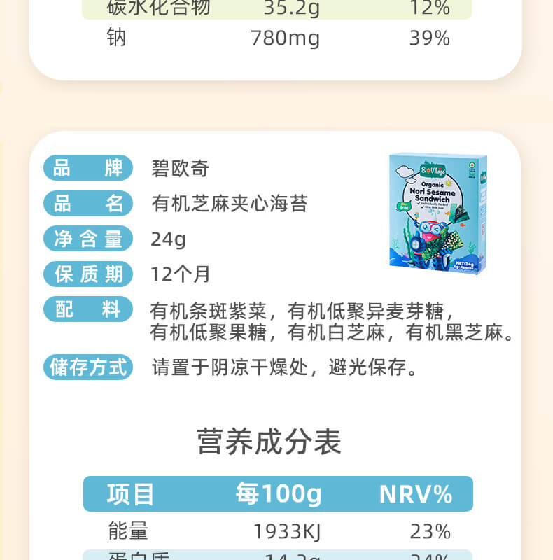 碧欧奇有机海苔系列海苔碎/芝麻夹心海苔